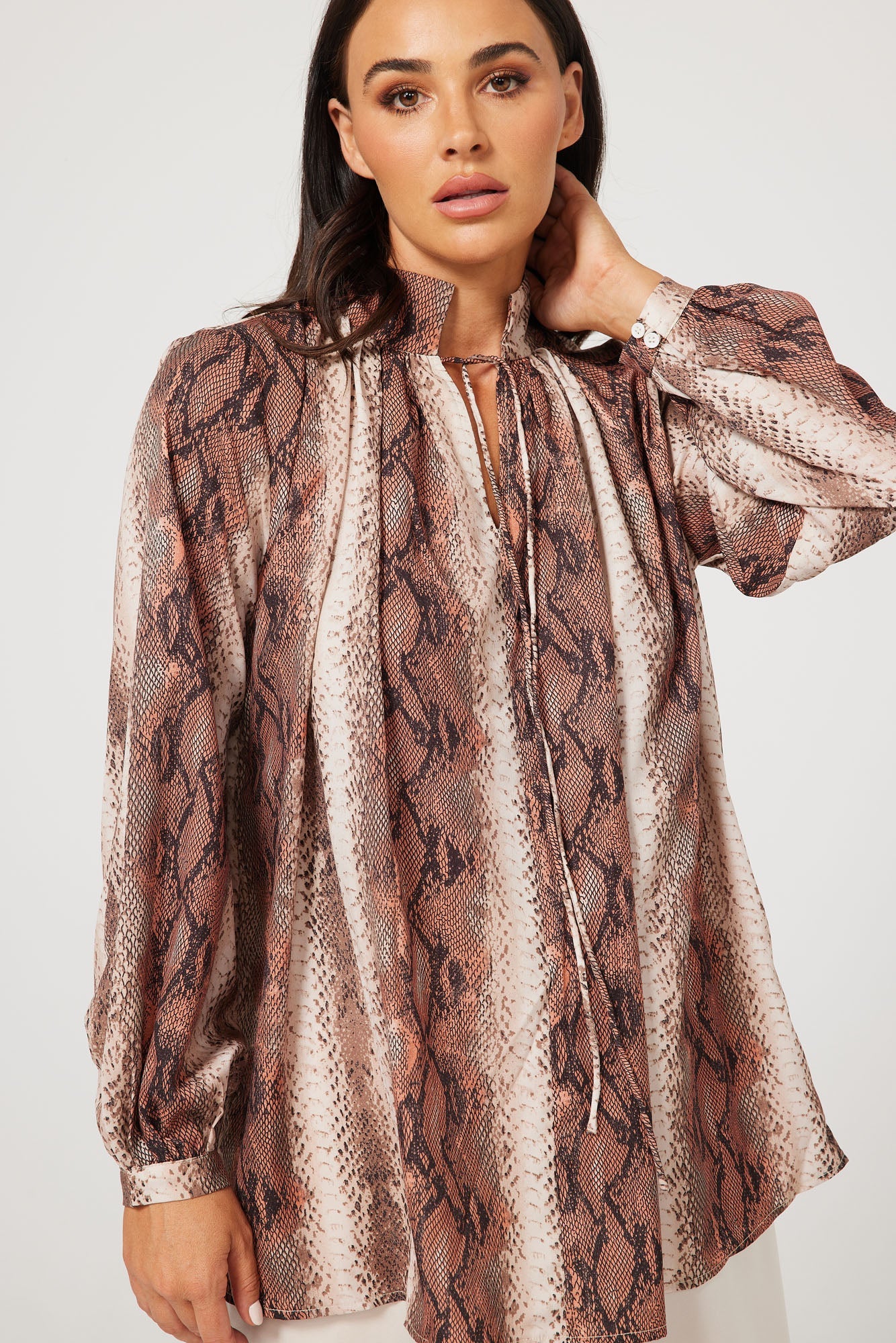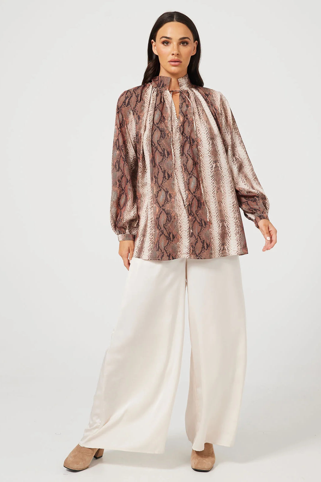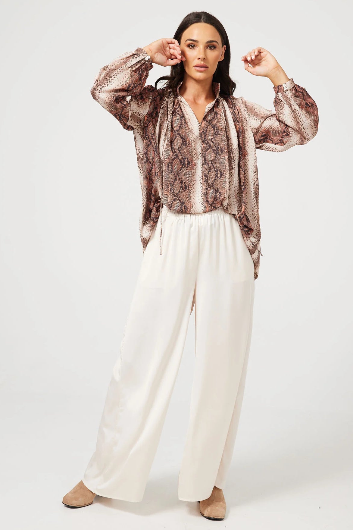 This gorgeous billowy top is a versatile addition to your wardrobe. It features a neck tie detail and narrow buttoned sleeve cuffs. Smart for work and feminine for a night out, the Montana Shirt by Brave + True can take you anywhere you need to go!