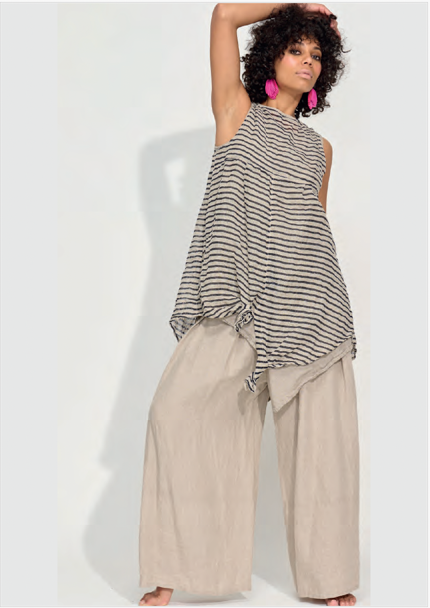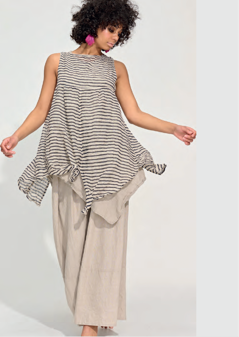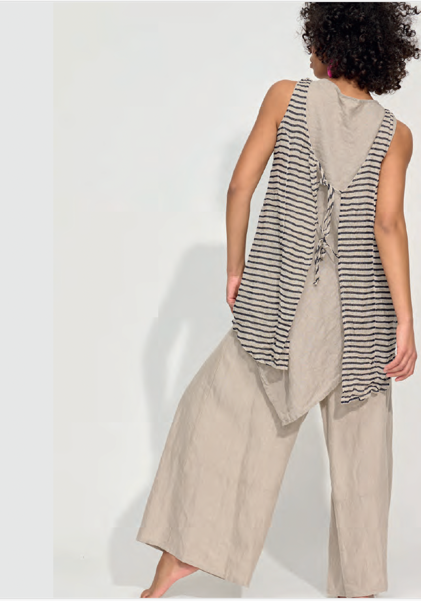 This gorgeous light layering piece is a great way to trick up your already existing pieces in your Banana Blue wardrobe. Made of the lightest linen flax it is meant to drape and elongate.