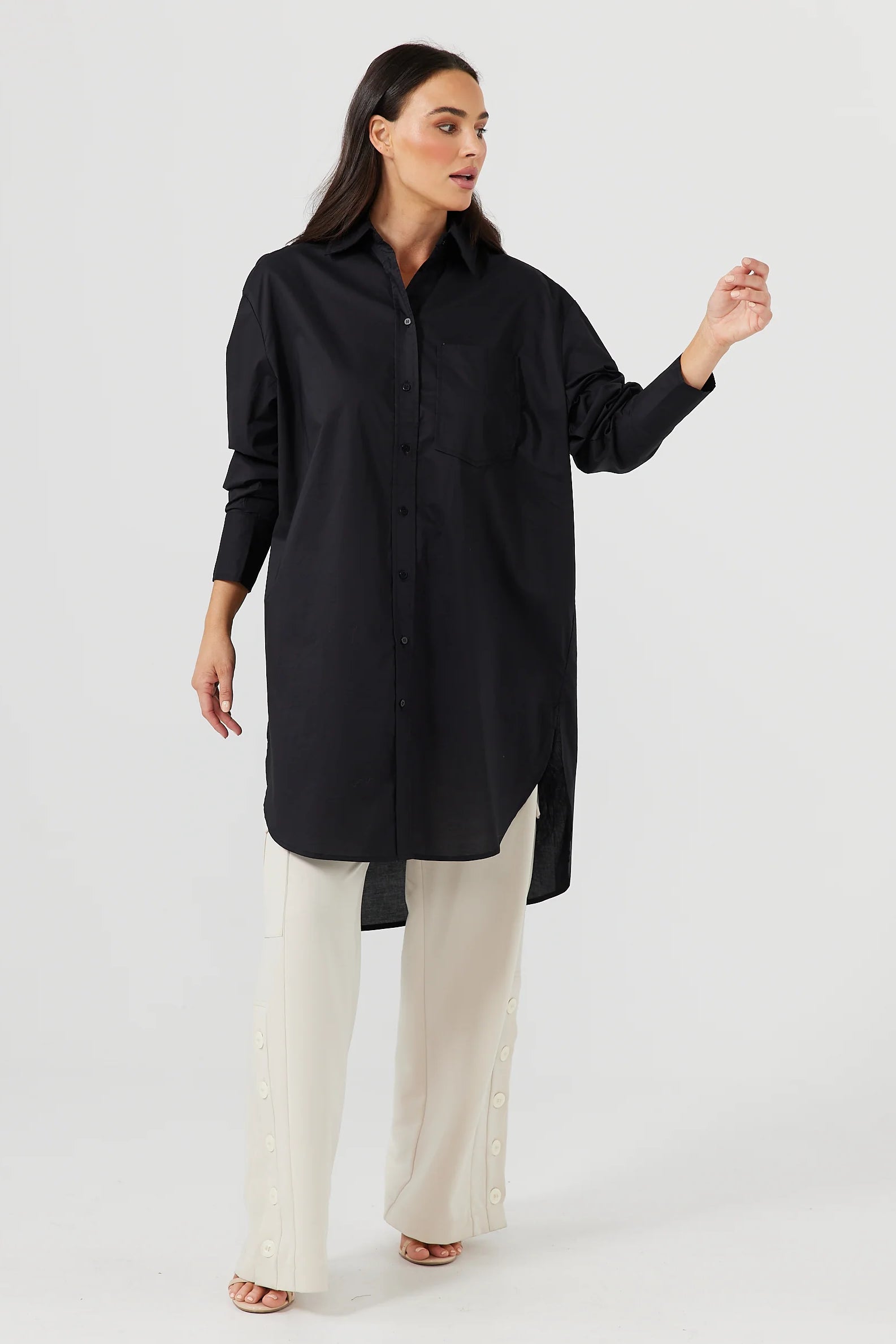 A good white shirt is the key piece to a perfect wardrobe. Take charge like a General in this classic long line over shirt. Elegant design lines make this the most flattering and versatile shirt to grace your wardrobe. Wear it buttoned up, or open as a layering piece.