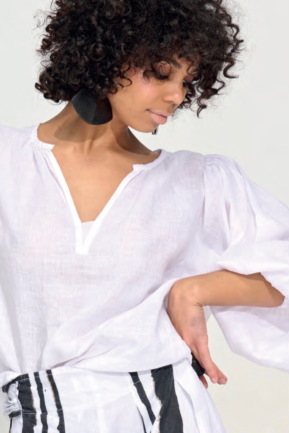 V Neck Balloon Sleeve Top in White