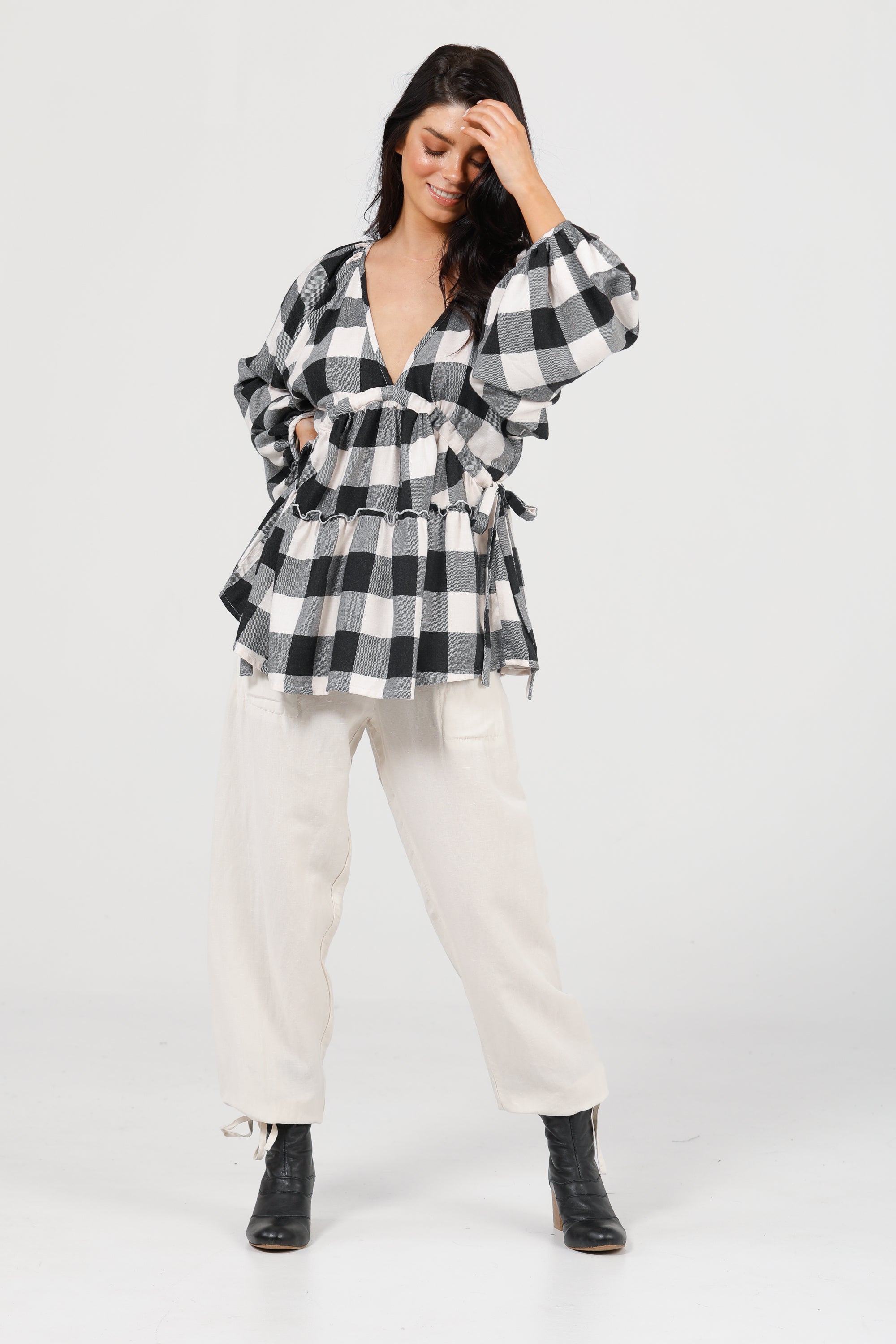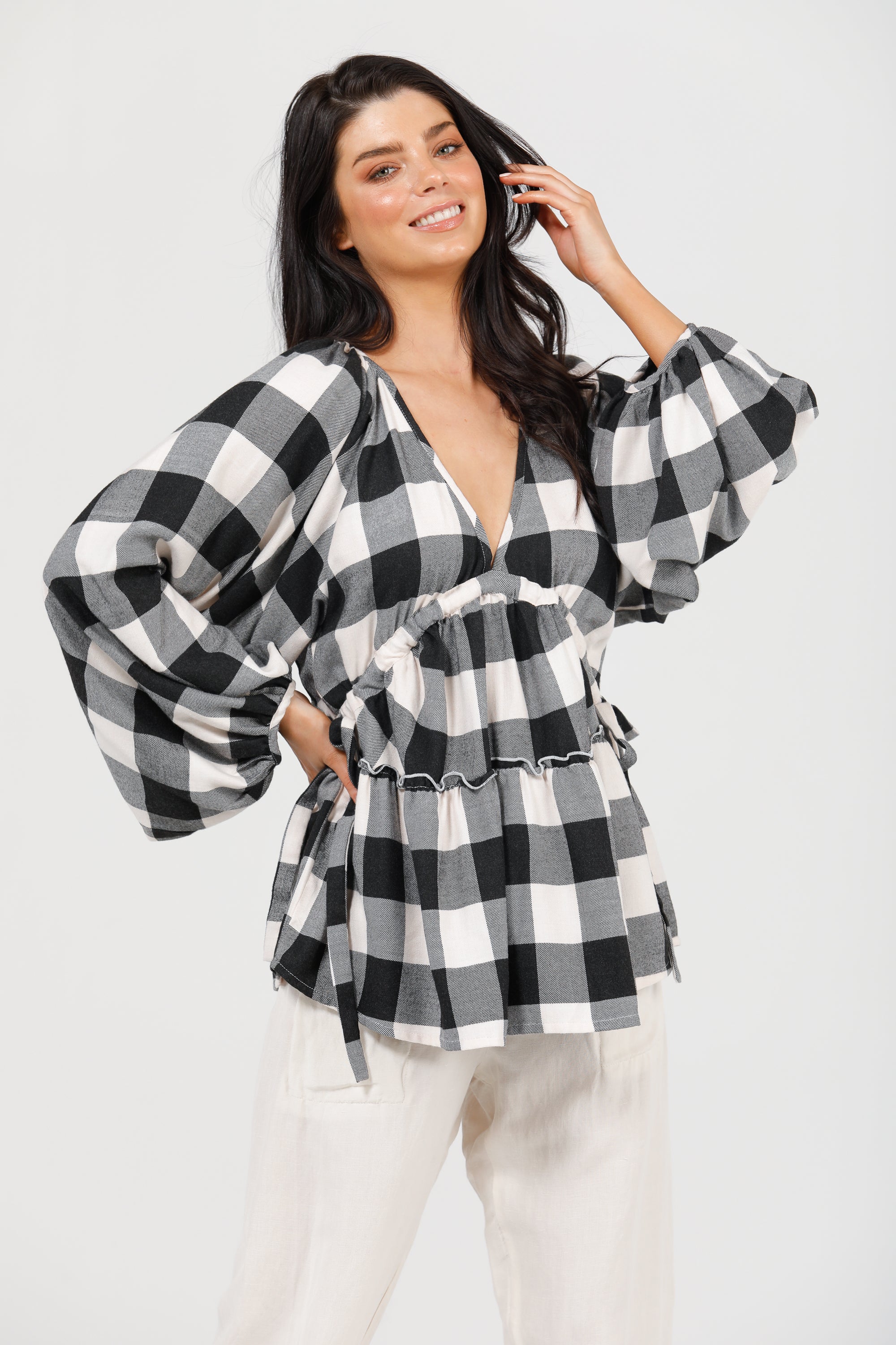 A new shape for Shanty, the Wing and a Prayer Top channels contemporary boho. Tap into this season's love for voluminous sleeves and breezy fit with this gorgeously detailed tiered blouse.