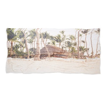 Our luxurious cashmere blend scarf portrays Nusa Dua in Bali. This over-sized scarf is a versatile travel accessory for any exotic destination.