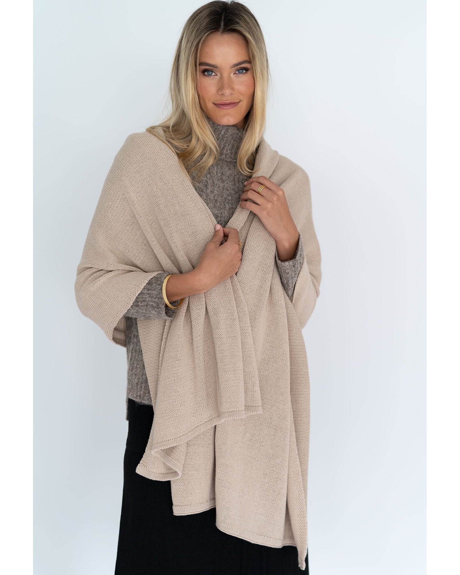 The natural cotton/linen fibre has been knitted into a delicate braided pattern allowing your skin to breathe whilst staying cosy during the cooler months.