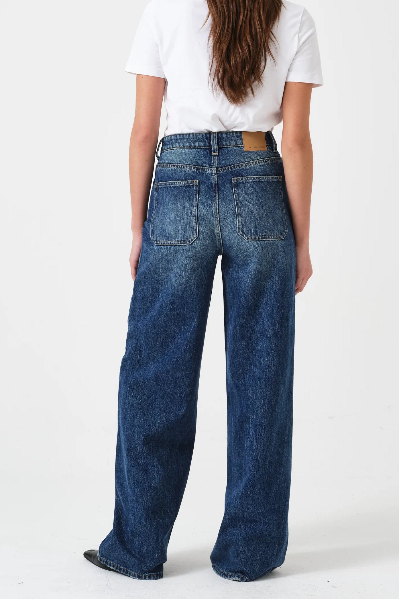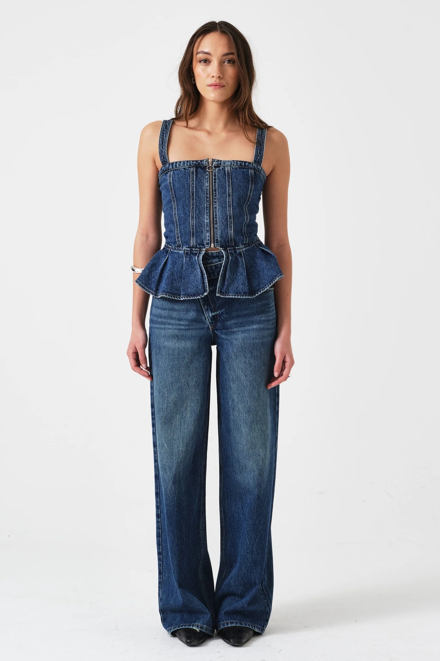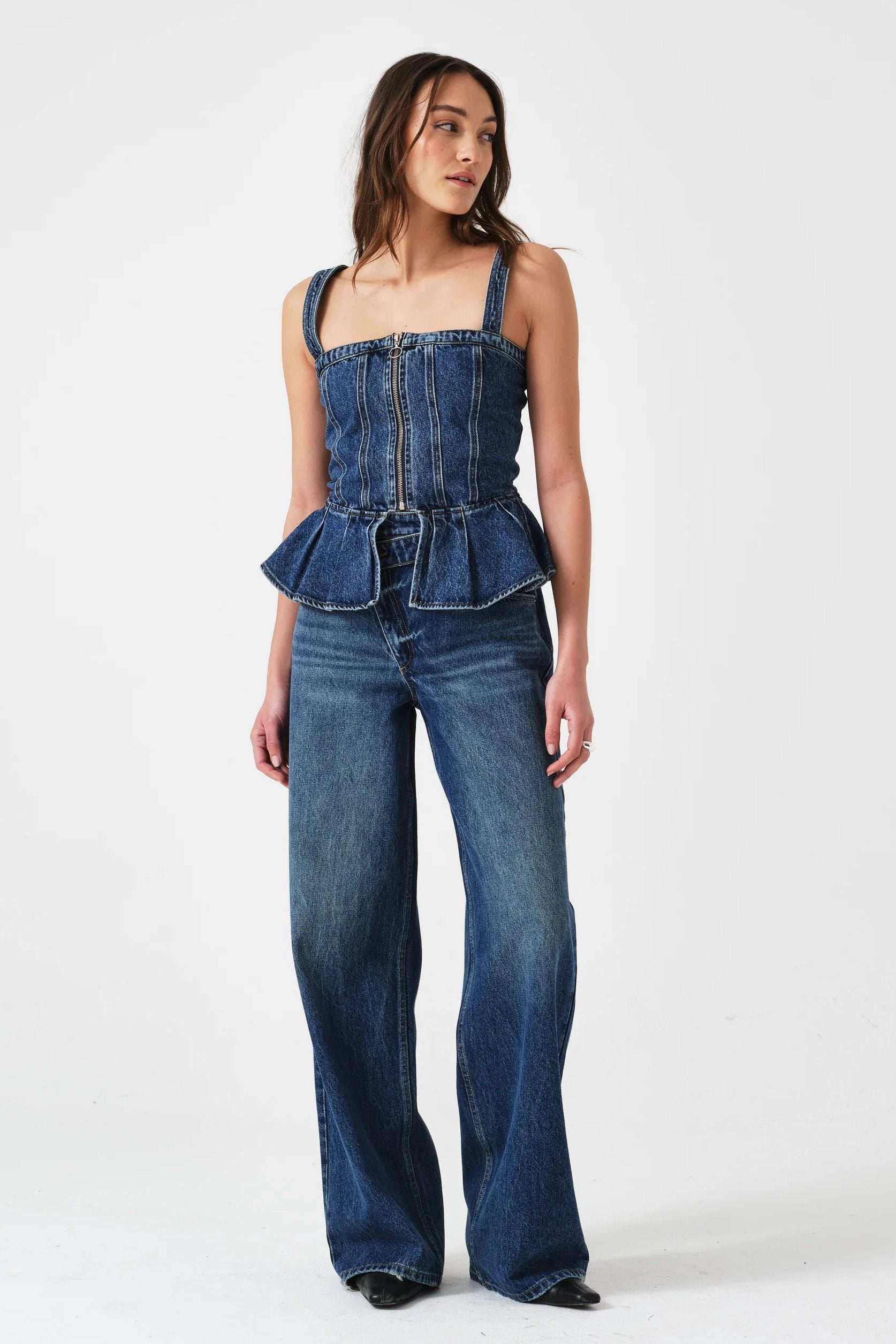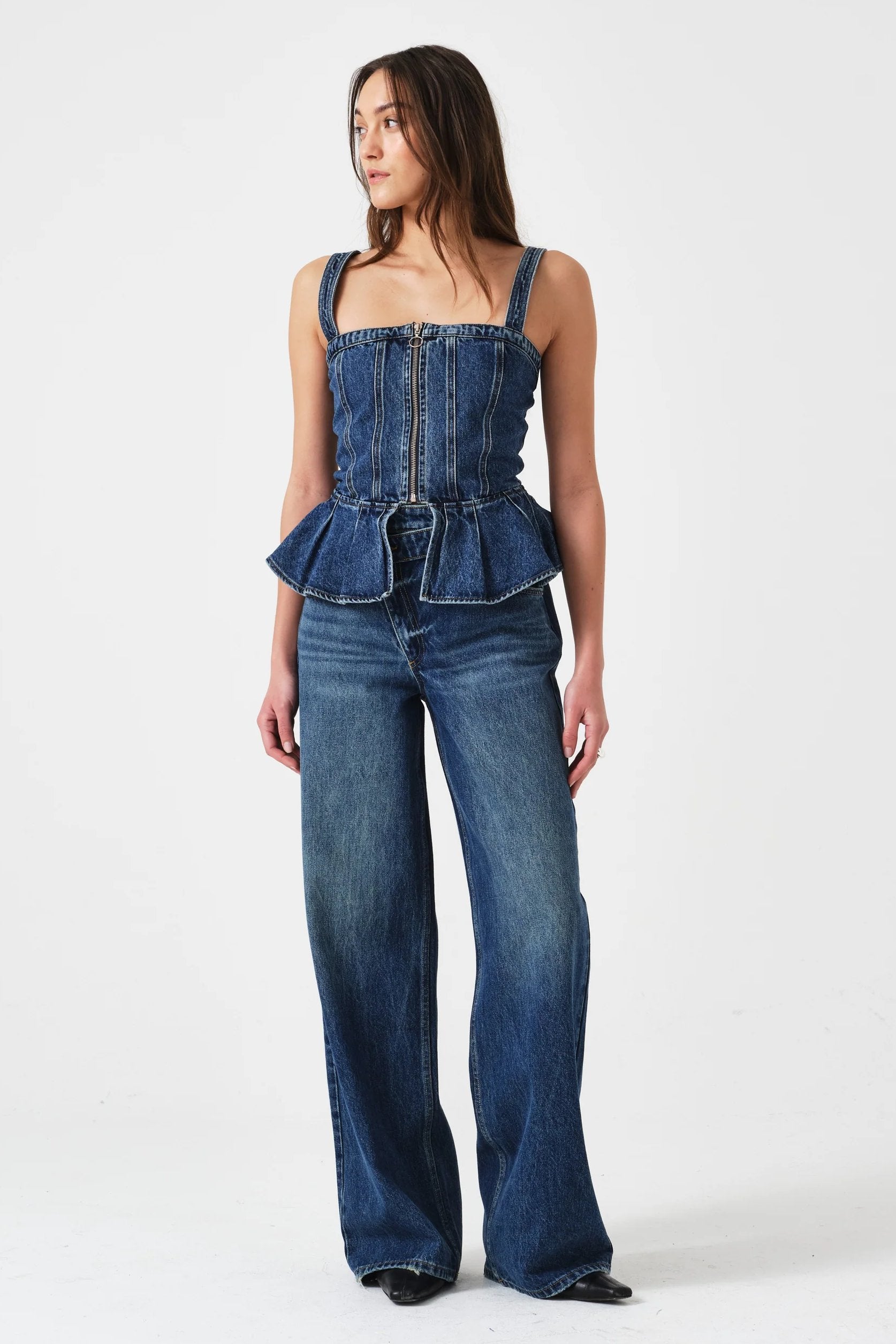 The Lia: your new go-to jean with a sleek crossover waistband and an easy, wide-leg fit