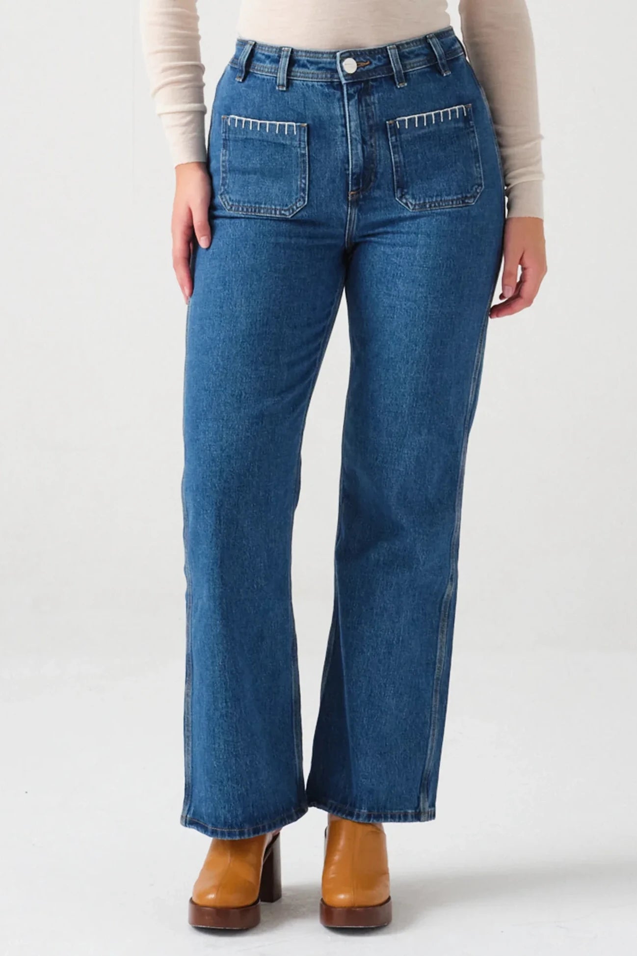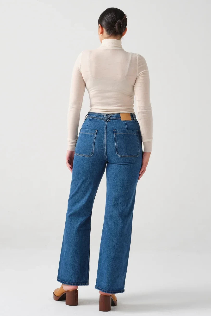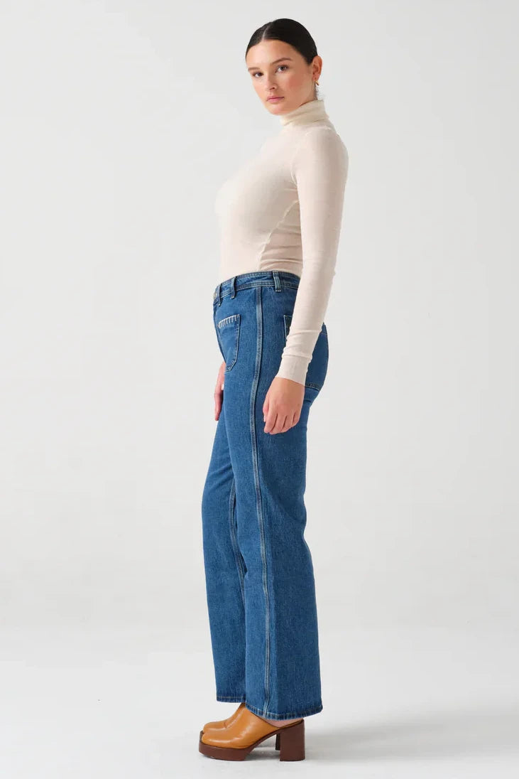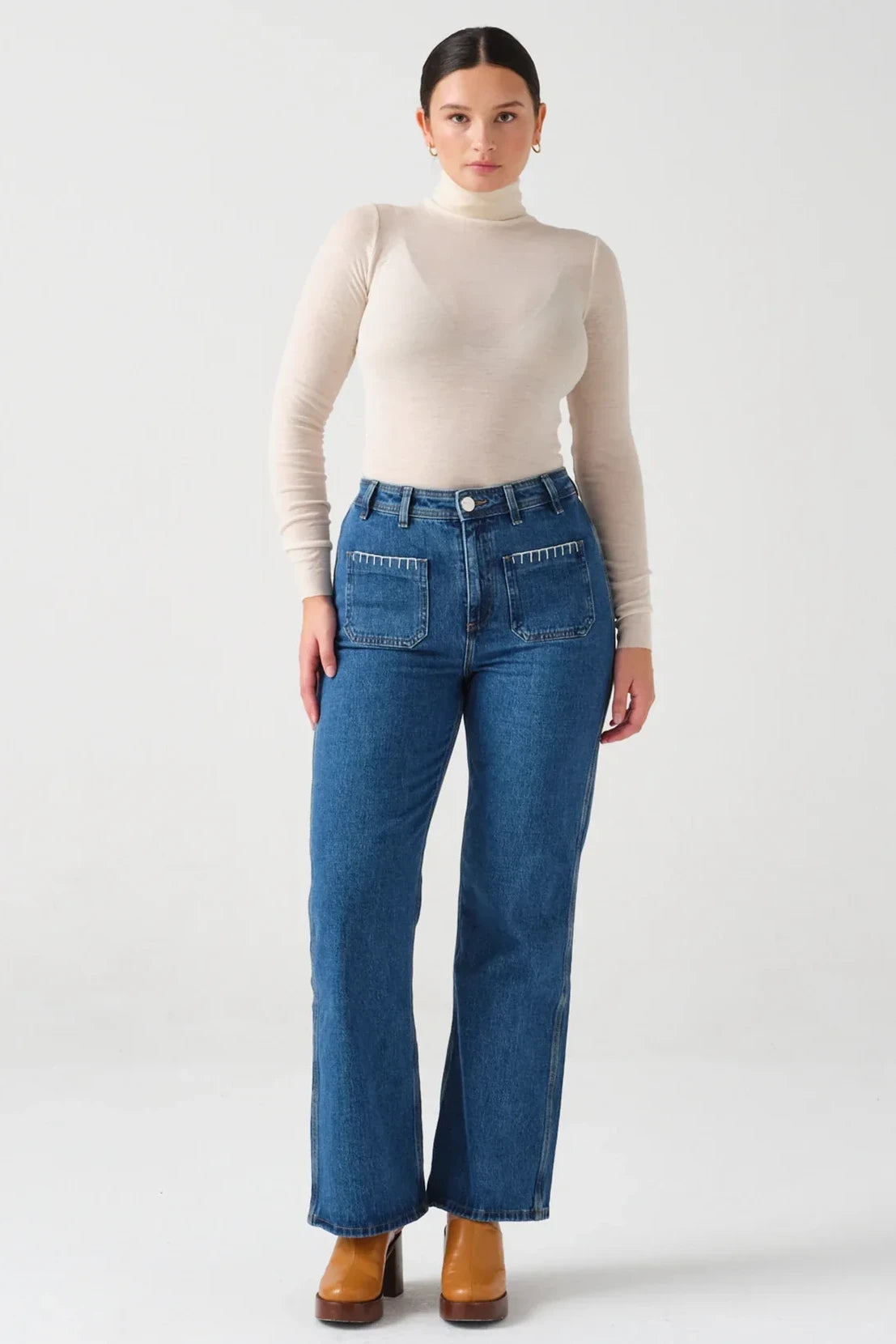 Our best selling jean, perfect for everyday wear. The Mabel is a long vintage inspired wide leg with a high rise and slim on the hips.