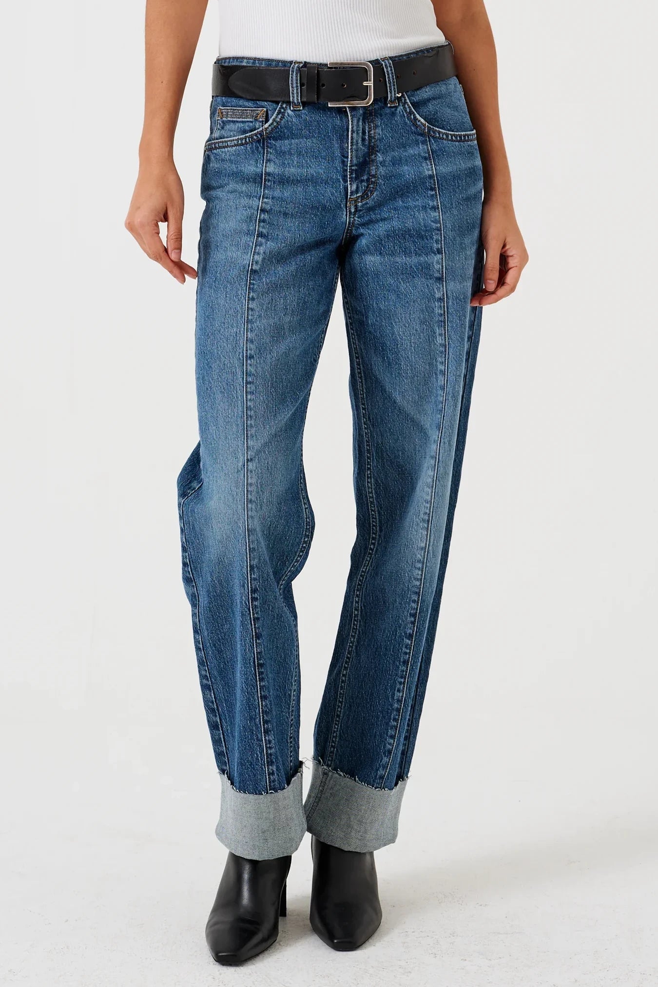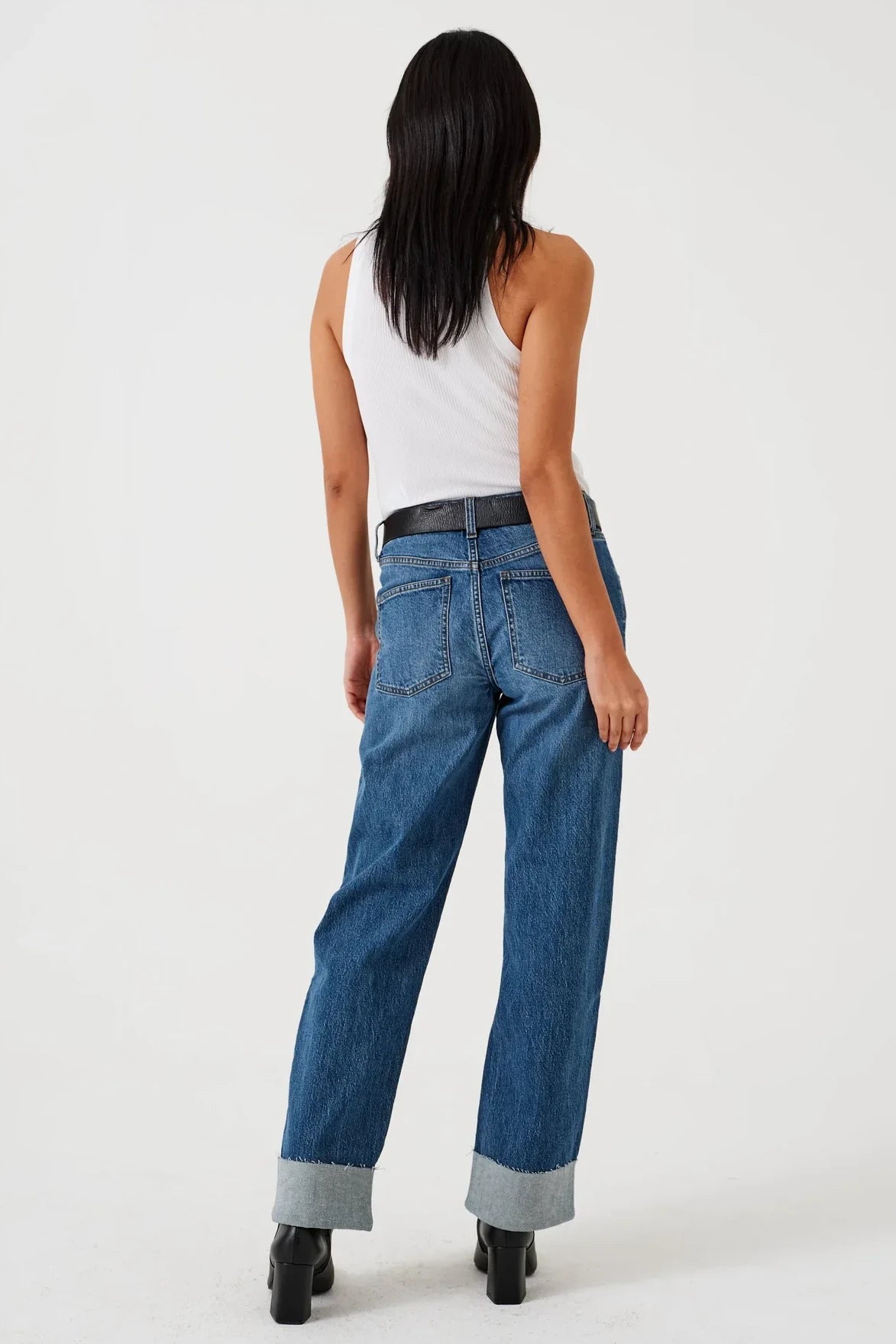 A fresh take on the classic straight-leg stevie jean, featuring a deep turn up. Pairs perfectly with a basic white tee or one of our many beautiful blouses, creating an effortless look.