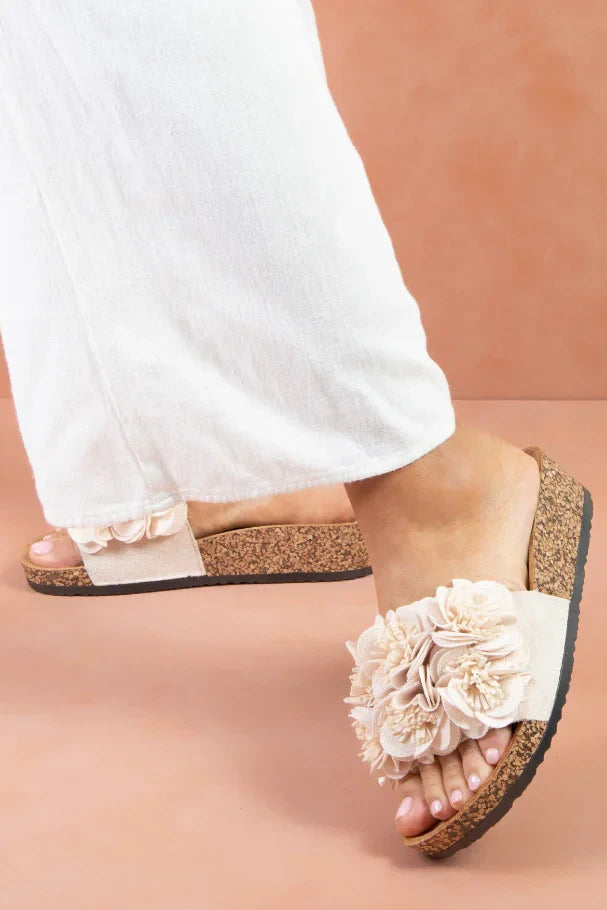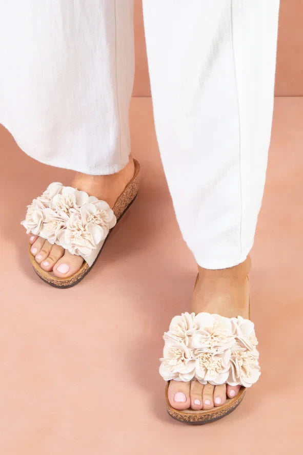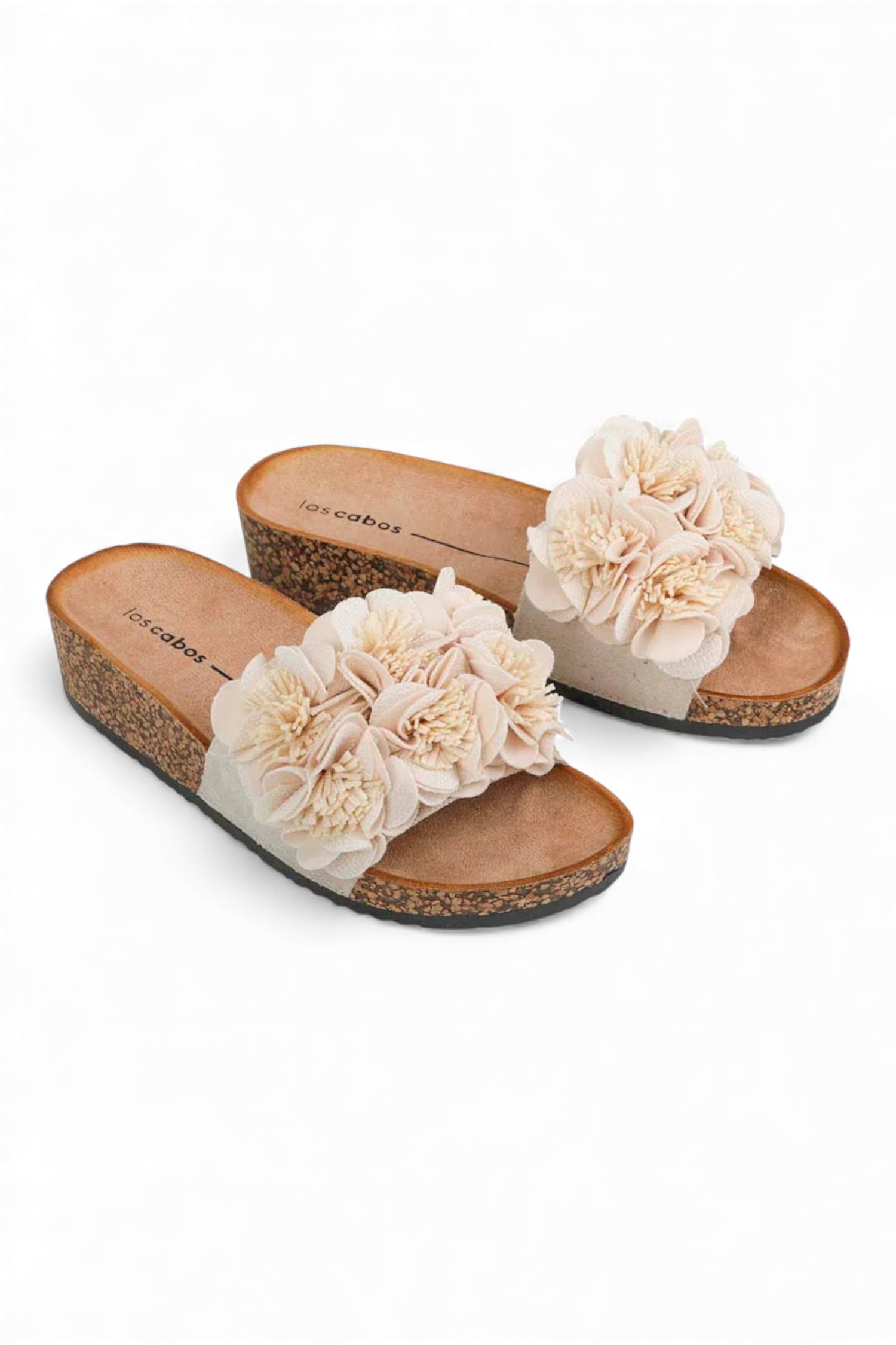 Step into summer sophistication with the CORSAGE Slides. Featuring a wedge heel for just the right amount of lift, these slides are adorned with beautiful floral embellishments that add a touch of elegance to any outfit. The CORSAGE Slides offer both style and comfort, making them an essential addition to your summer shoe collection.