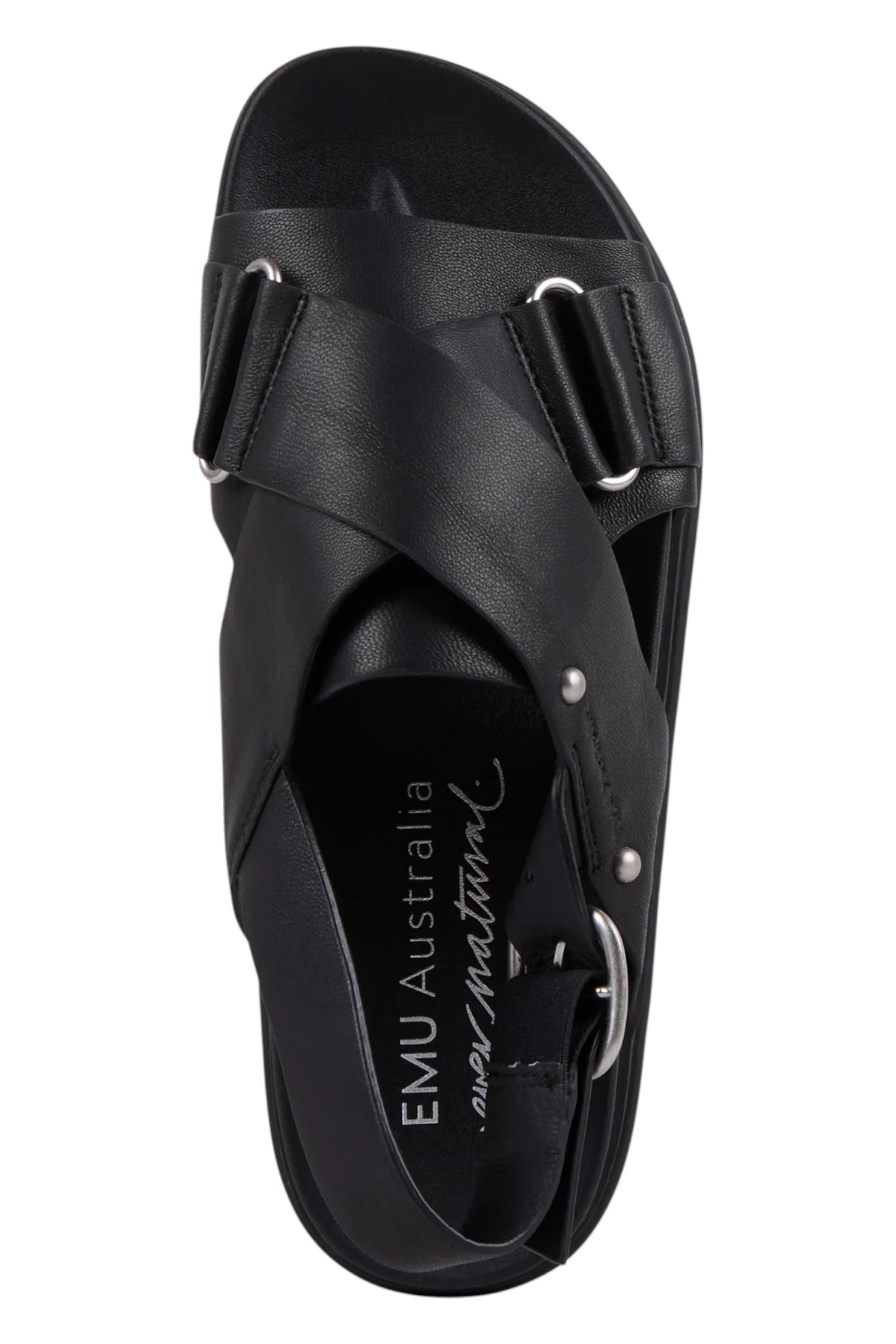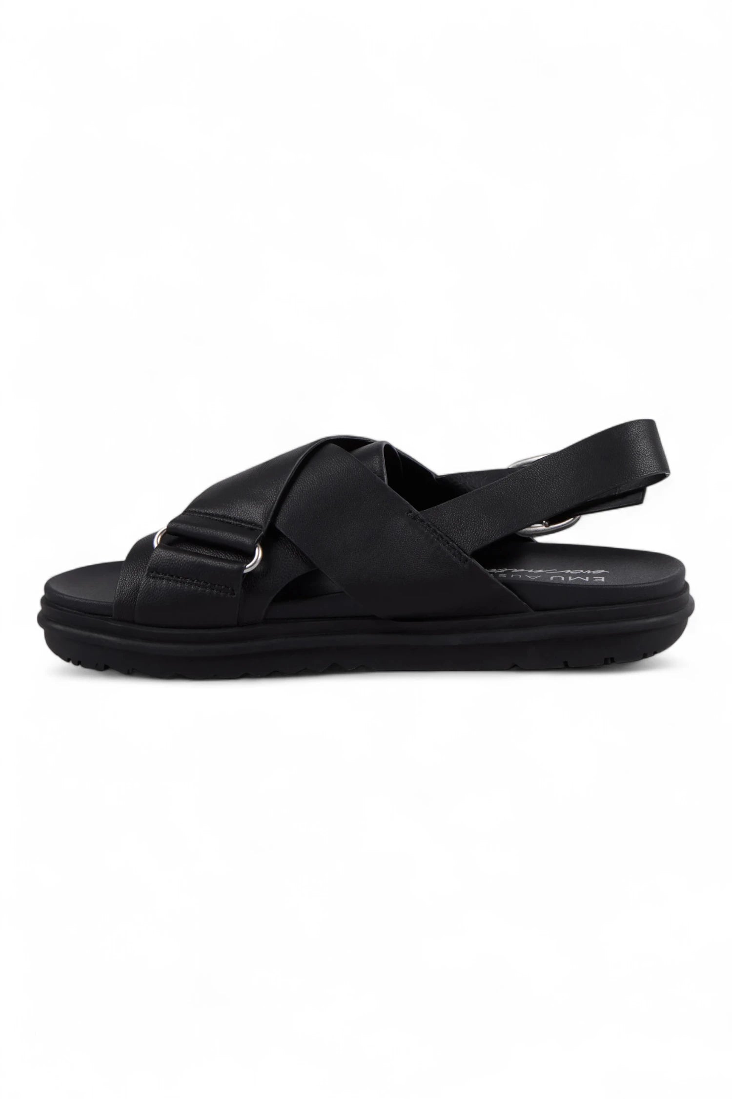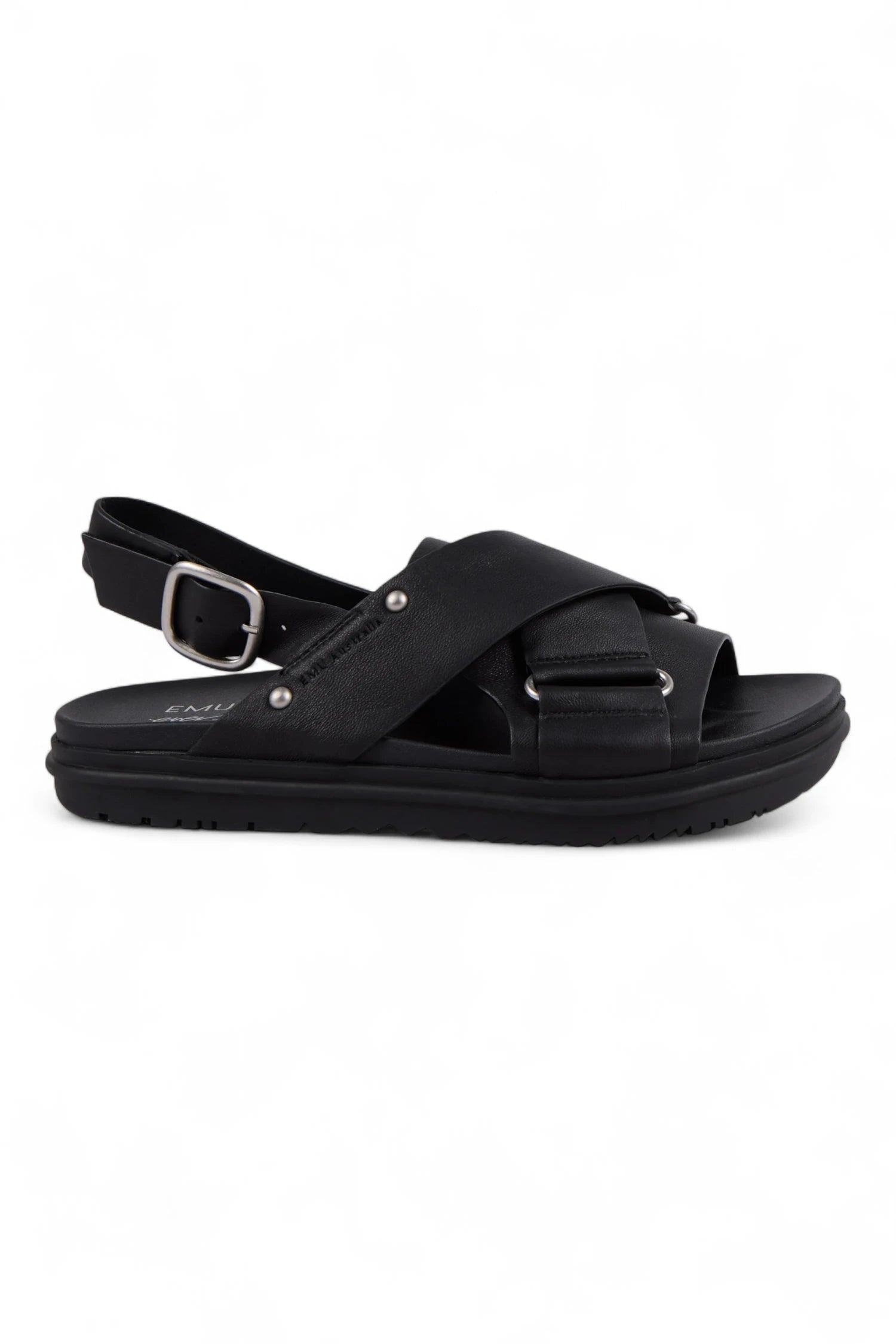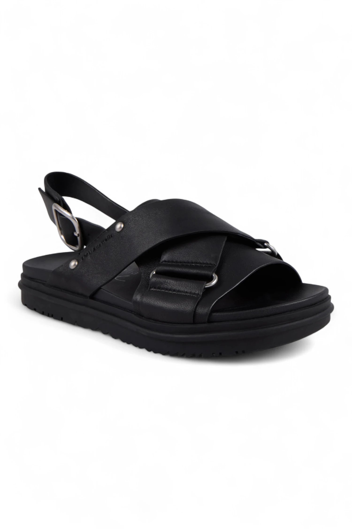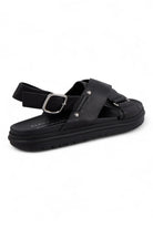 Effortless style meets thoughtful detail in this crossover leather sandal. Soft leather wraps your foot comfortably, while a back strap with an adjustable buckle keeps you secure with a polished touch of metal hardware. Set on a durable sole with a soft footbed, it balances comfort and understated style for sunny days that call for easy, versatile footwear.