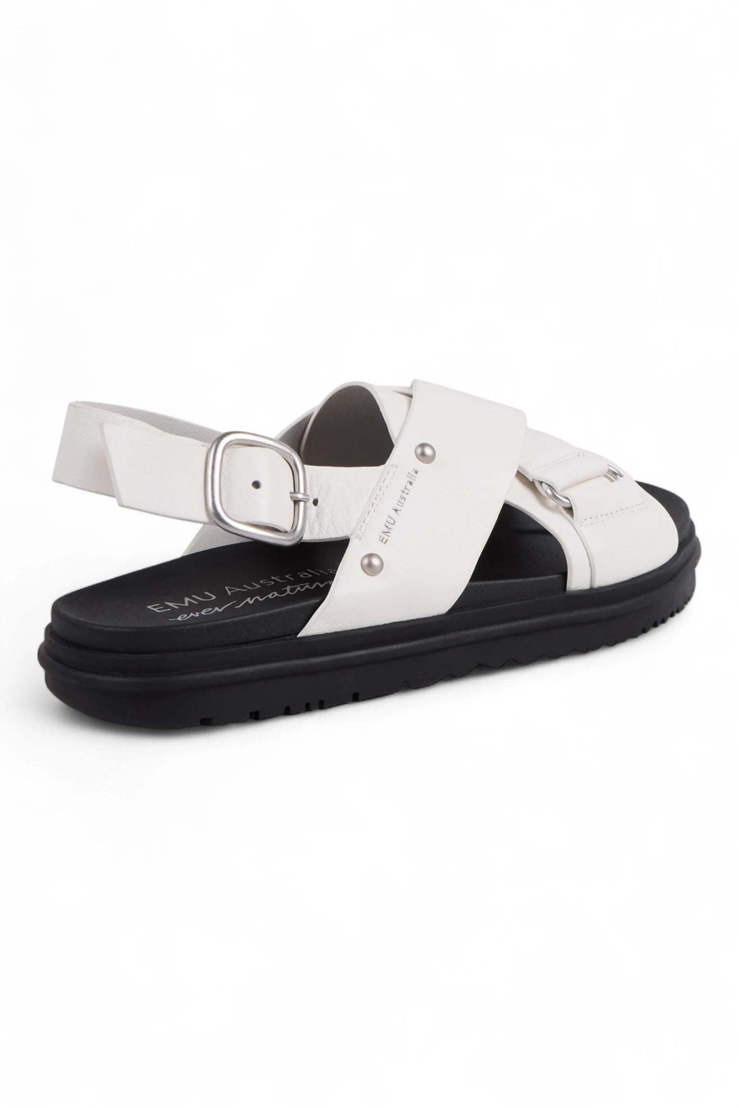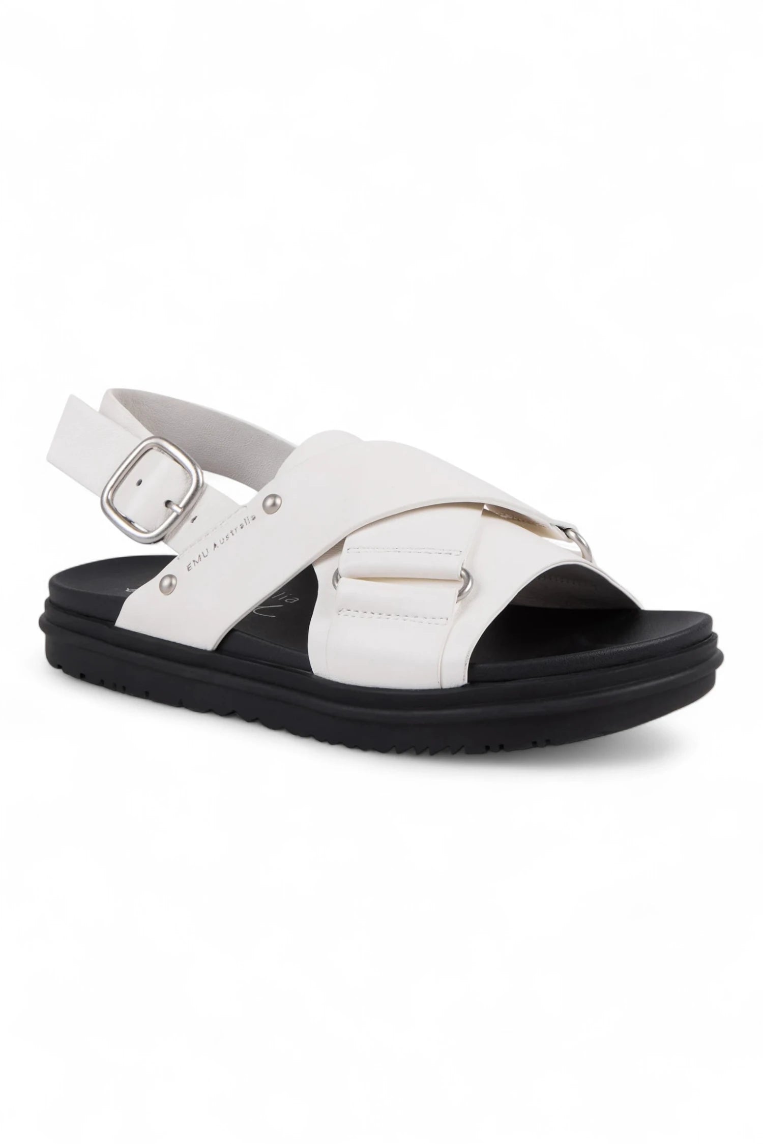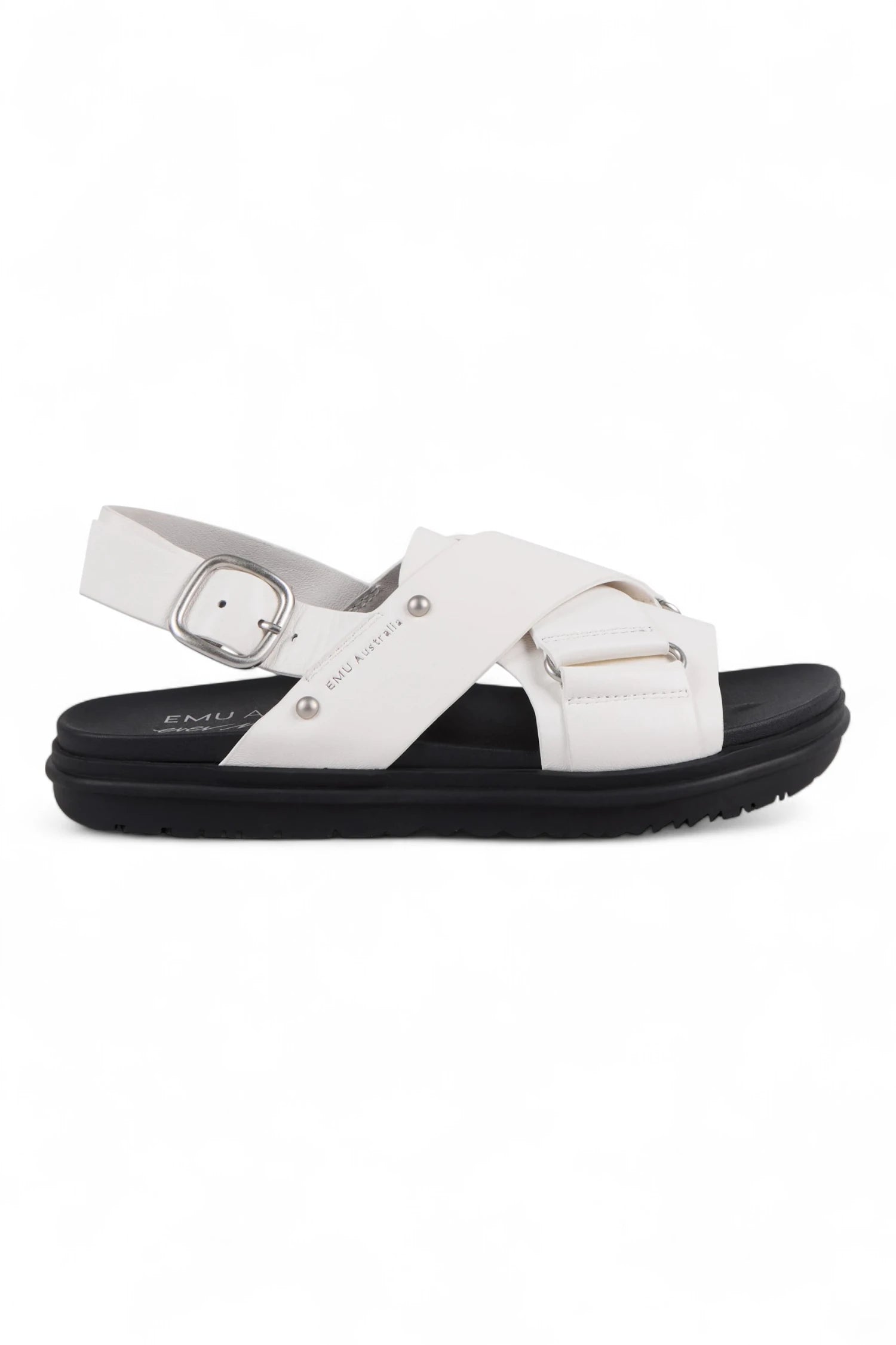 - Featuring a bold crossover strap design and a statement buckle