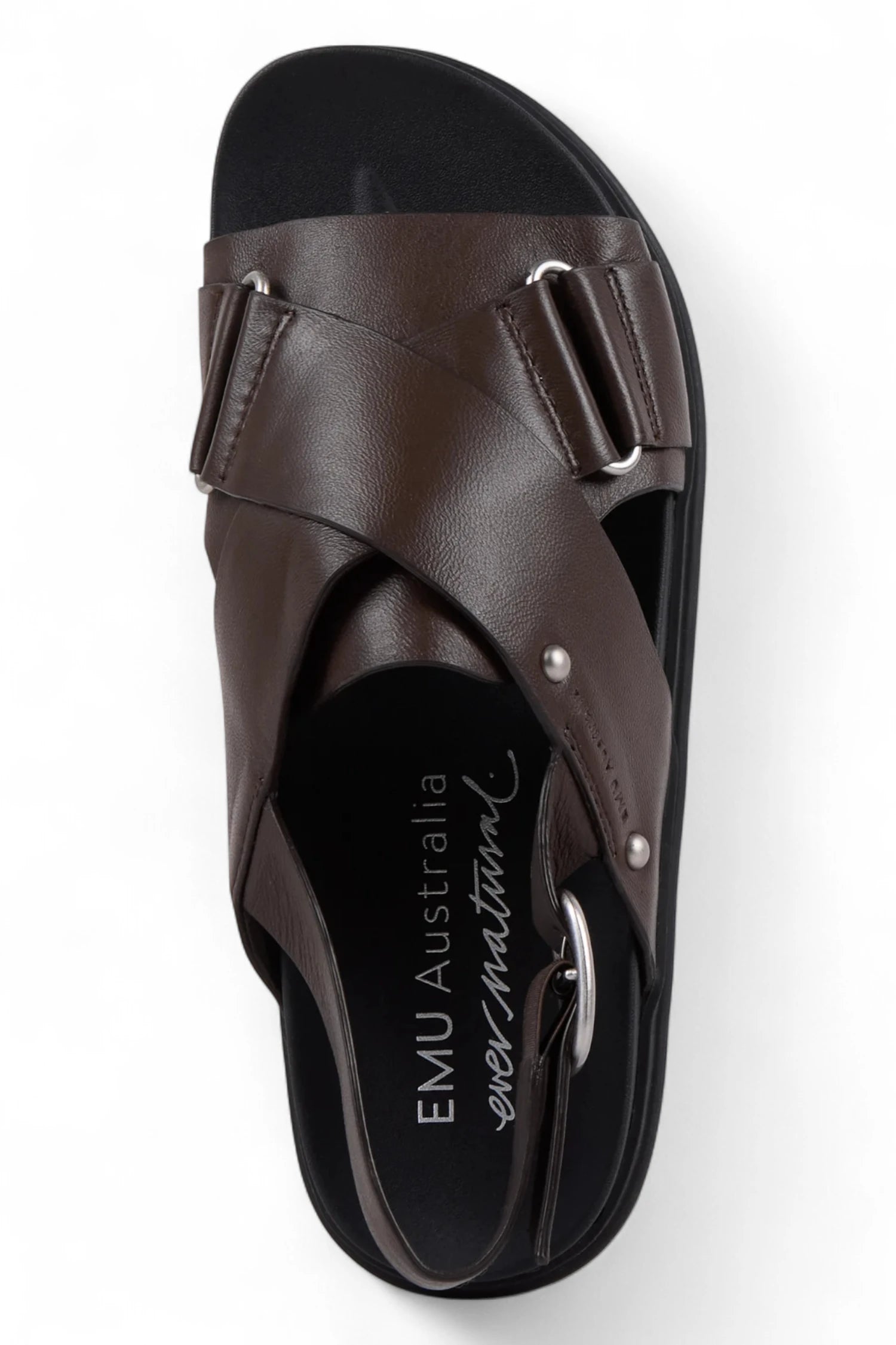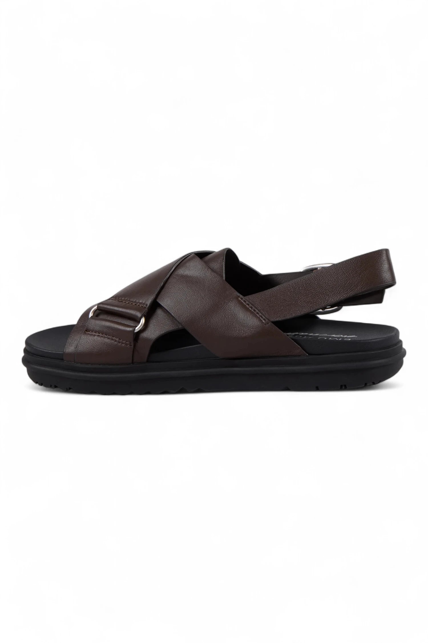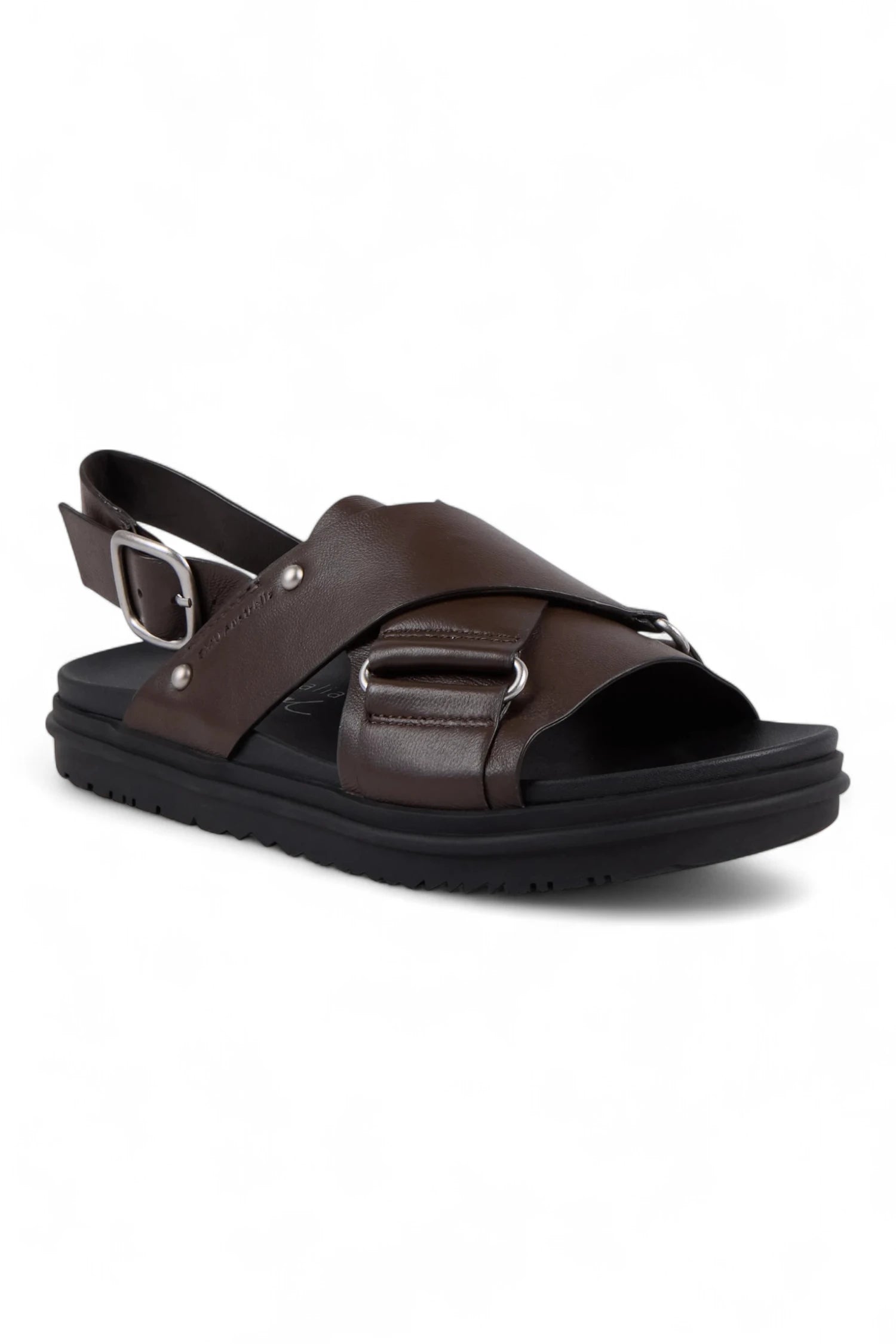 Effortless style meets thoughtful detail in this crossover leather sandal. Soft leather wraps your foot comfortably, while a back strap with an adjustable buckle keeps you secure with a polished touch of metal hardware. Set on a durable sole with a soft footbed, it balances comfort and understated style for sunny days that call for easy, versatile footwear.