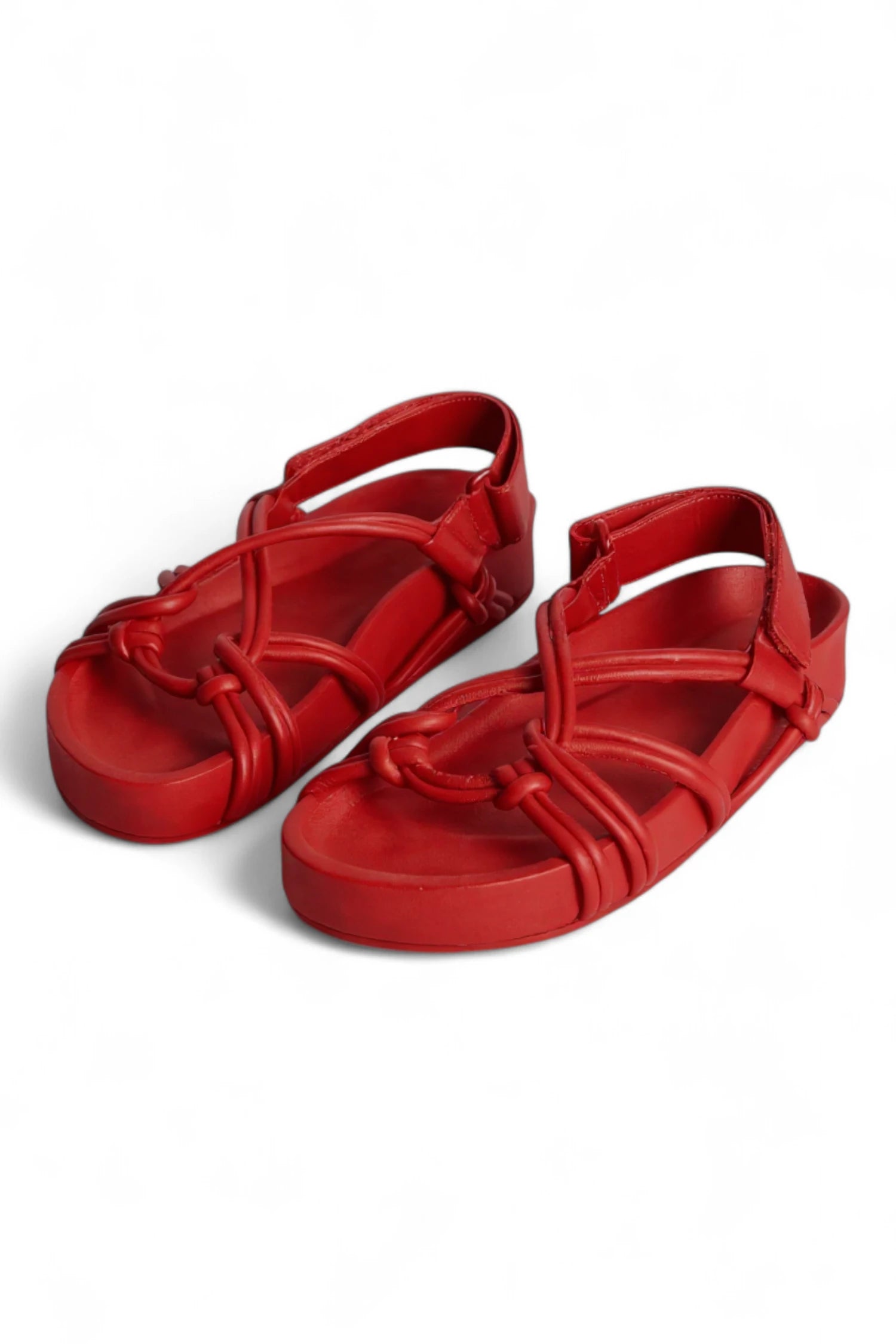 The Joi Sandal in black by JVAM brings a bold, sculptural edge to warm-weather dressing. With oversized buckles, wide structured straps and a supportive slingback, it delivers on both design and comfort. The raised sole adds subtle height, while the contoured footbed makes it an easy all-day option. A refined take on the everyday sandal. Wear it with relaxed tailoring, cotton shorts or an oversized shirt for a clean, confident look.
