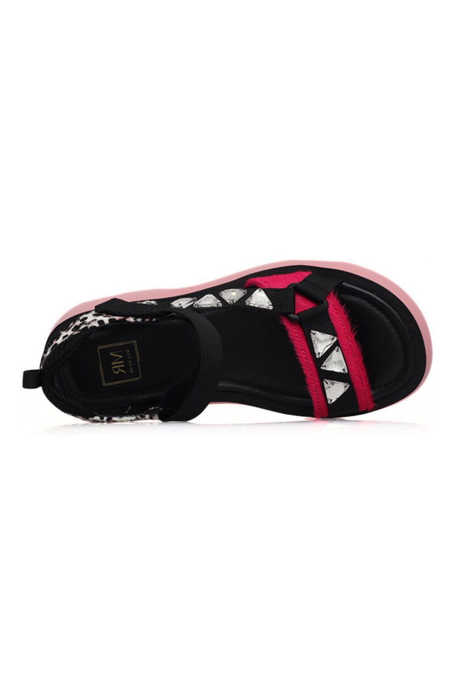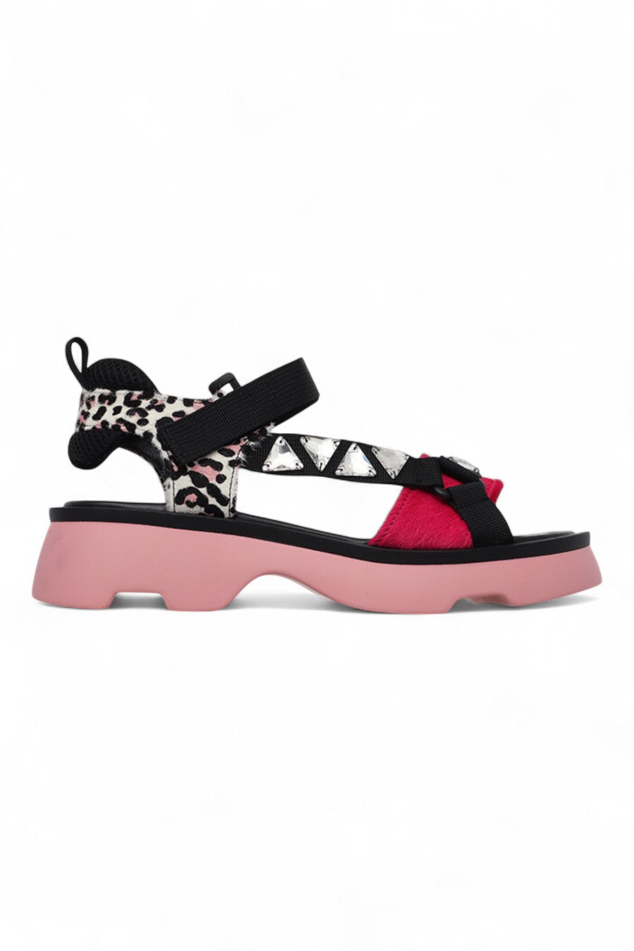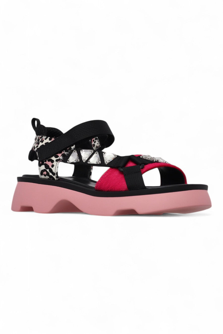 Xylo Sandal | Black Pink Leopard Mix Pony Hair