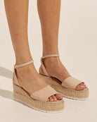 When chic meets high fashion, you hone in on these timeless wedge sandals. The peep-toe design includes a secure soft leather strap to support the arch, as well as a discreet adjustable ankle strap to hold the foot firmly in place. The base of these bold wedges is made of intricately woven straw that creates a stunning pattern which is finished off with a crisp white rubber sole. wear this neutral shade of leather wedges with denim pieces, linen and anything else in your spring/summer wardrobe.