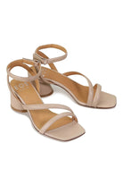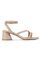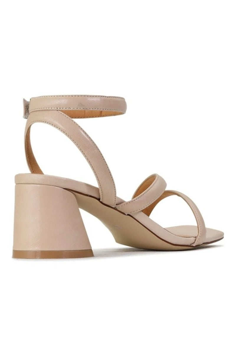 Signalling a shift away from extraneous details, these strappy sandals offer the utmost style and versatility. Set on a round, angled heel, the contemporary colour block design leans into the timeless appeal of luxe, leather materials. Three fine straps wind elegantly around the foot and ankle, secured at the side with a sleek, slide-through fastening. Round Heel with a perfect height for day and into the evening.