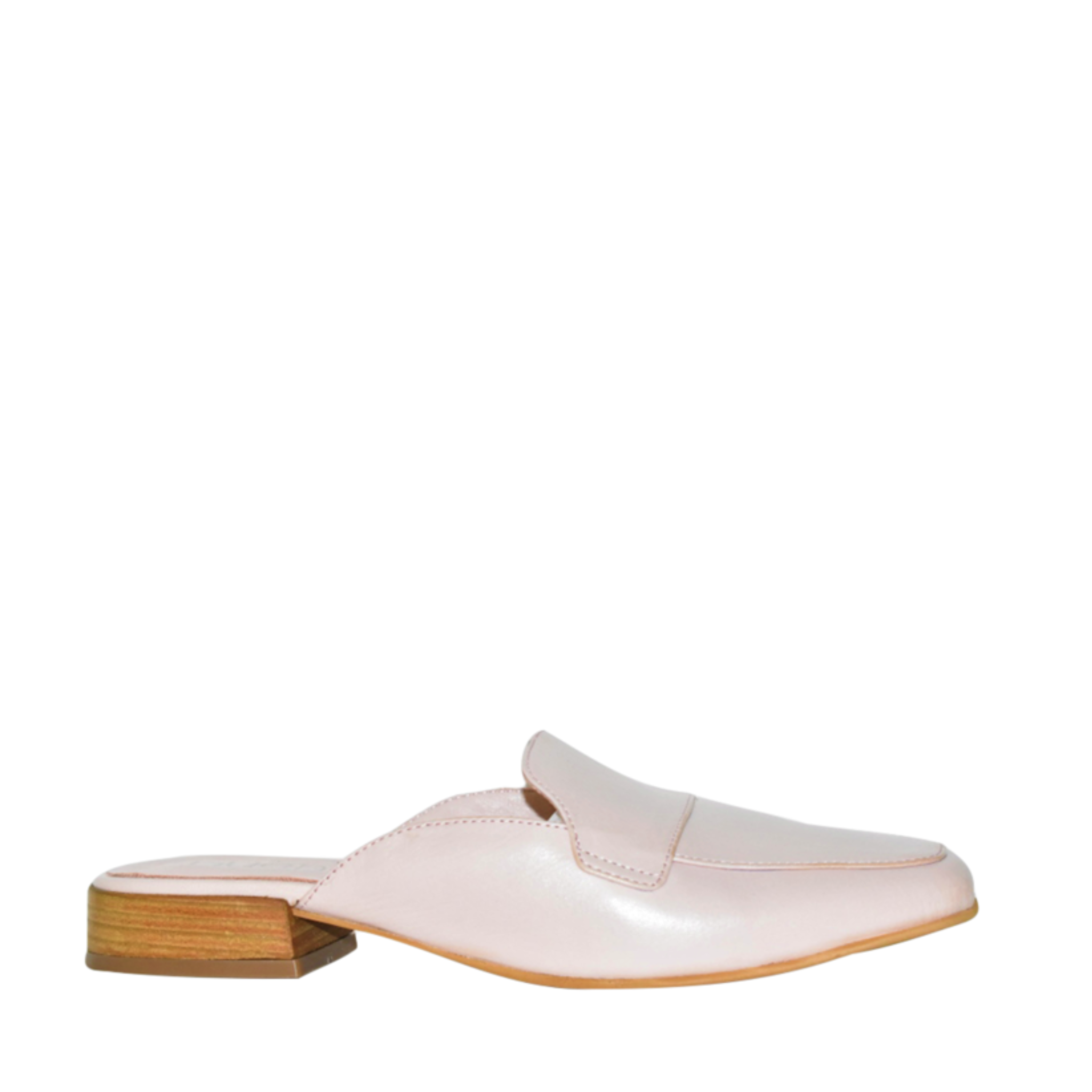 Julia is a Classic square topline mule with genuine leather veneer heel.
