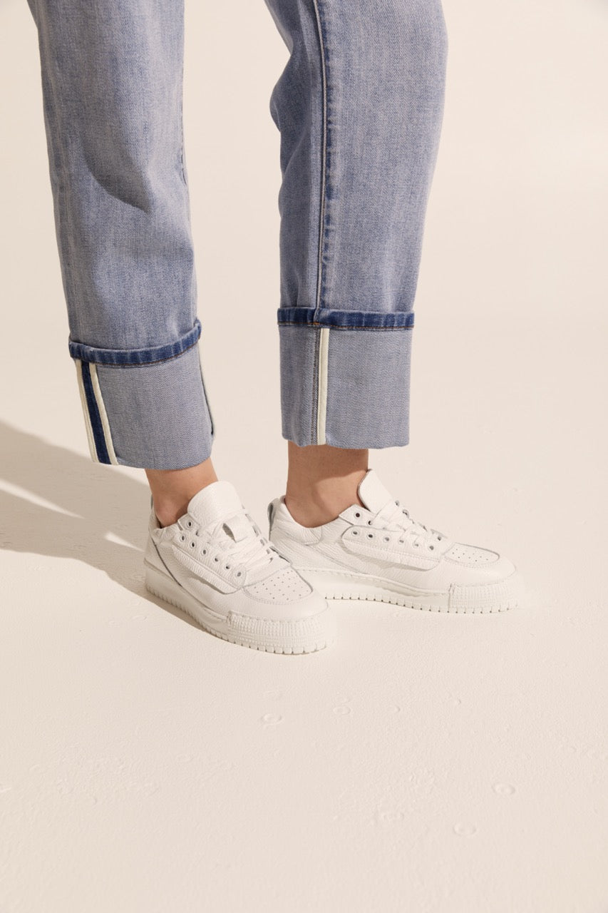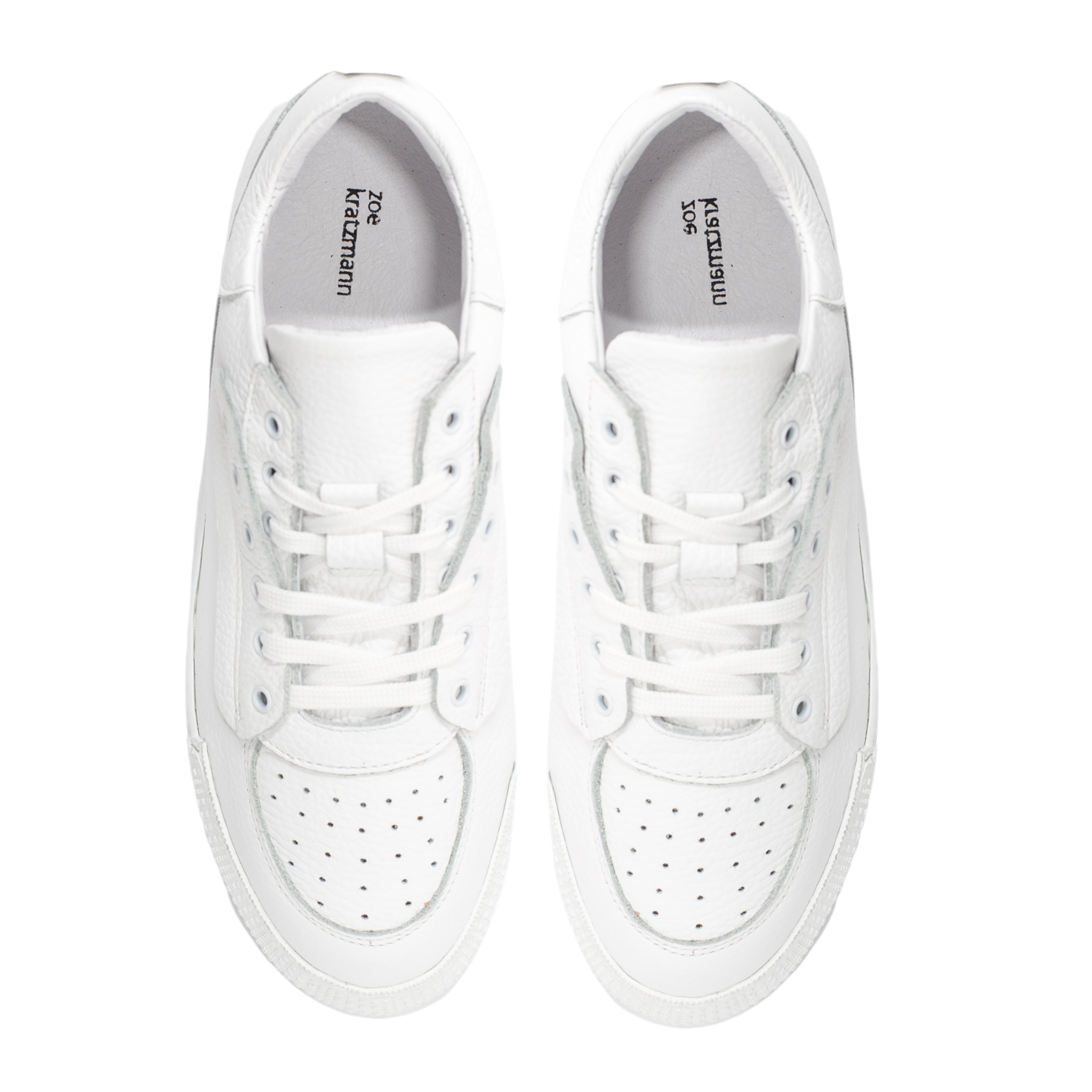 A stylish low-top sneaker that will complete a quintessentially cool outfit. The soft leather, perforated toes and supportive sole provides comfort, while Italian craftsmanship takes casual to the next level. These dress sneakers are a classic crisp white design that is elevated. Pair them with a tailored blazer and jeans, flowing linen pants or a chic casual dress.