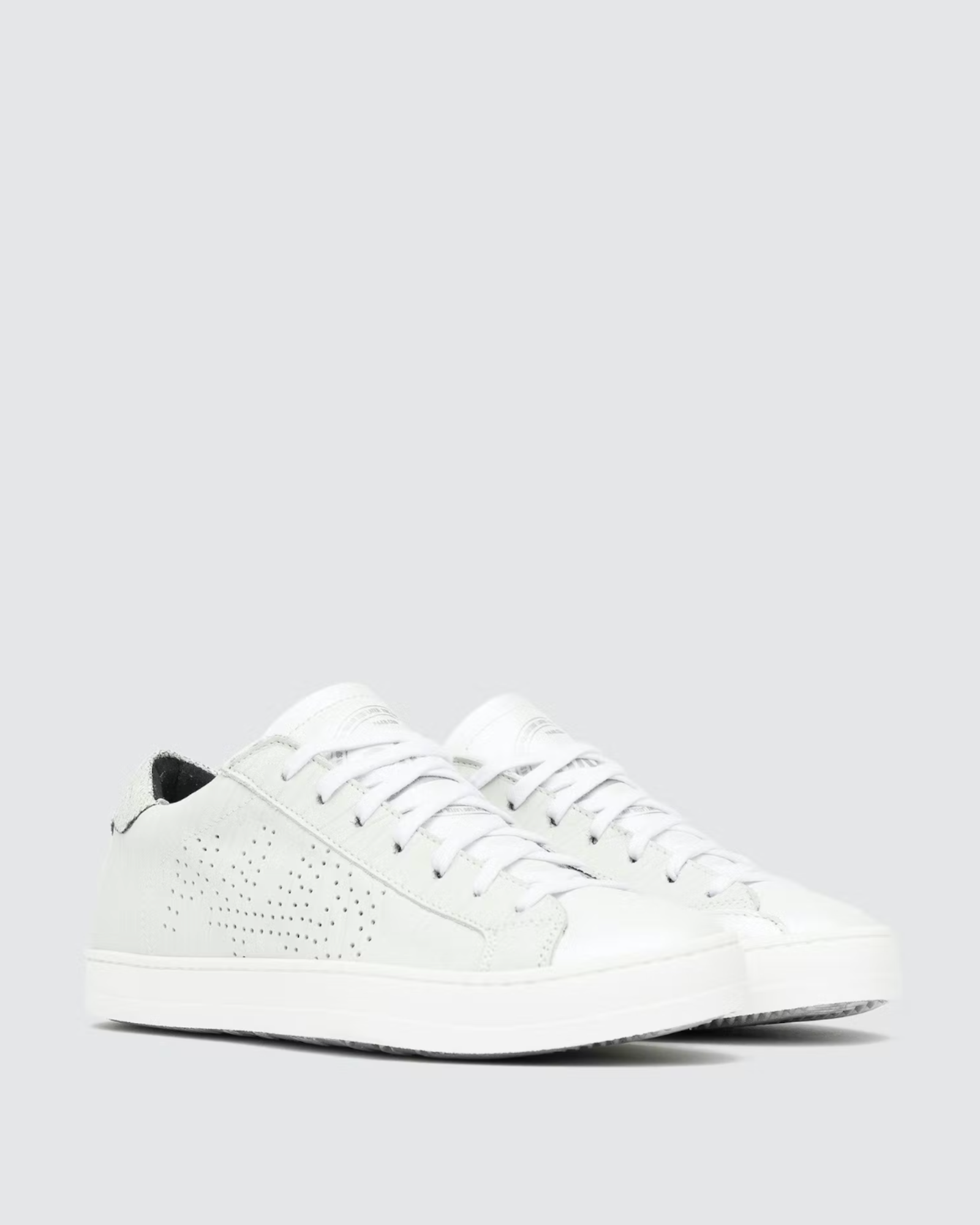 An instant icon, the John White/Zebra Beige Low Top Sneaker brings a relaxed attitude wherever life may take you. Crafted from premium, durable leather, these are made to be worn every day, everywhere. It's no surprise these sneakers are a fan favourite. Decide for yourself and make them yours. This style comes with white laces and an additional beige sparkle lace in the box.