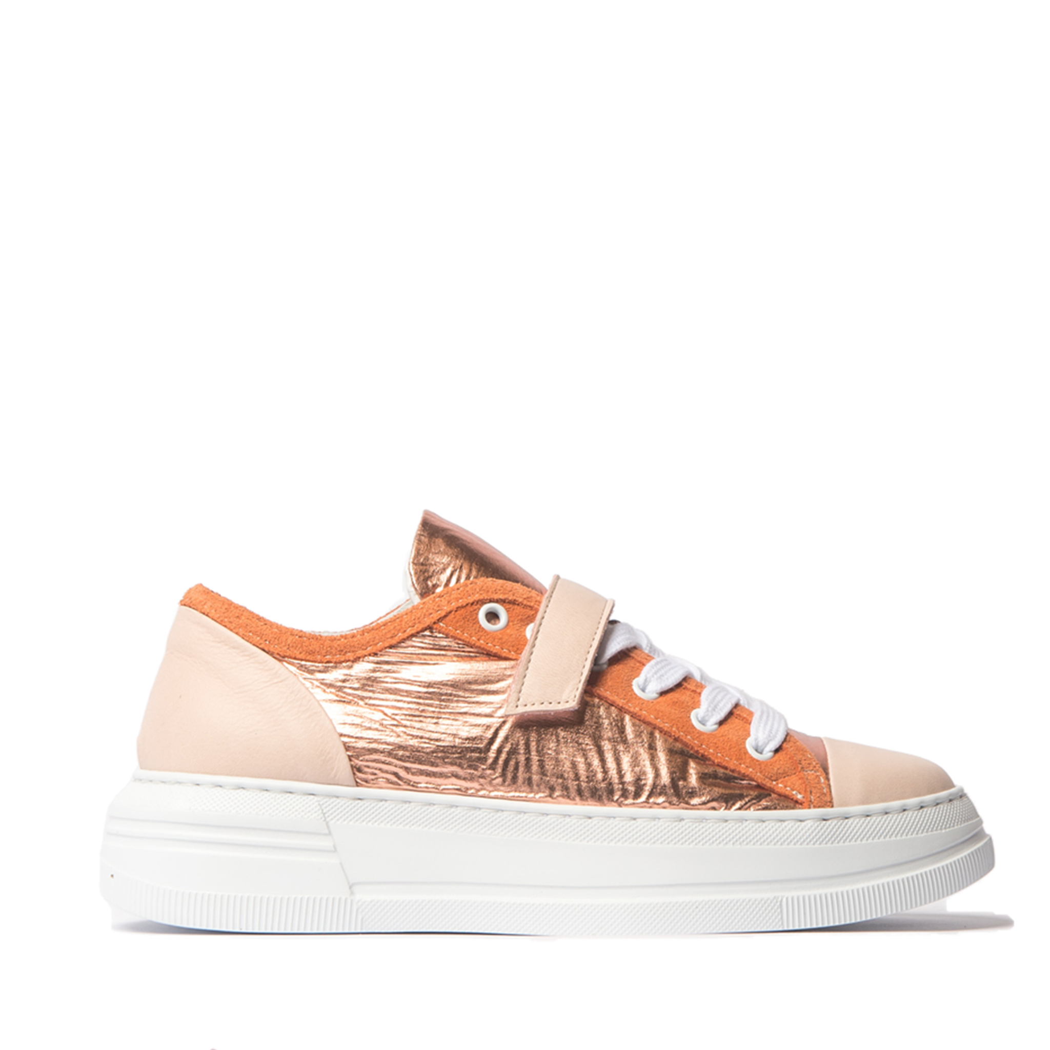 The Sizzle Sneaker by Zoe Kratzmann is a striking option for the season. Soft nappa leather on the toe and heel section contrast with a metallic leather trim. Fresh and contemporary let the sizzle be your go-to kicks for the season ahead.