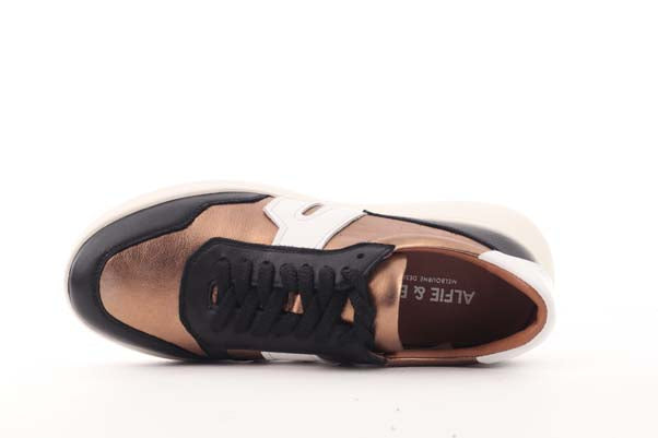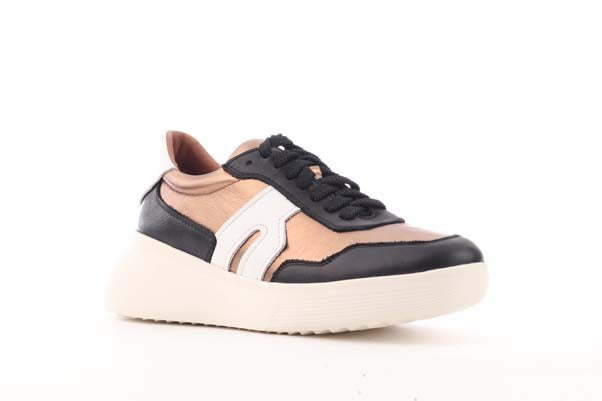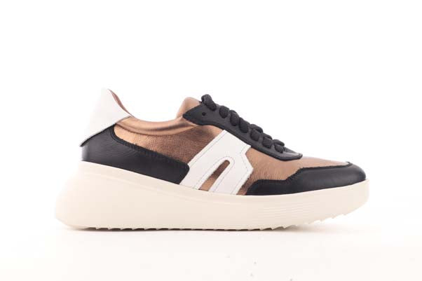 Combined with a classic cream /black/metallic rust leathered upper and beautiful profile of the platform this is the perfect casual/dress hybrid or sporty luxe.
