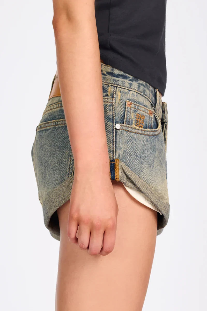 The LOW WAIST BANDIT is our cult classic short. The one and only. With large patch pockets. Low waist and relaxed in fit. It's slouchy in all the right places and includes our bower bird button and signature hem, rolled and twisted like a bandit. Designed to be worn low at the hips.