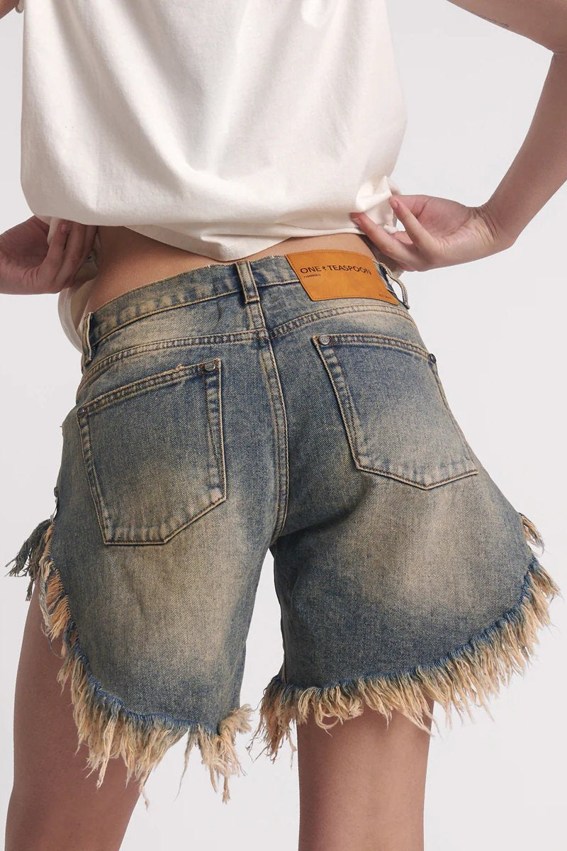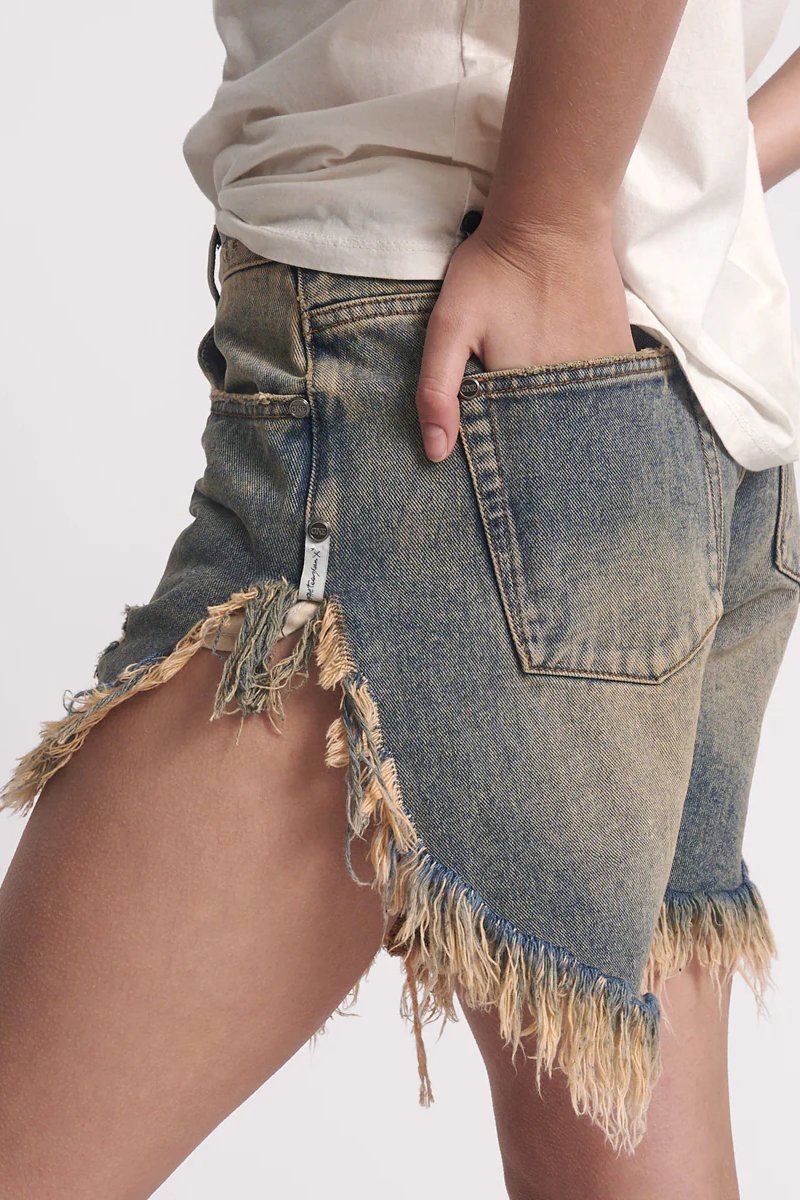 LOW WAIST FRANKIES are our best twist on a boyfriend short. Low waist and longer length, they fit like a slouchy boyfriend short but have been designed to expose your outer thigh. With cut away side seams they flatter all leg shapes.