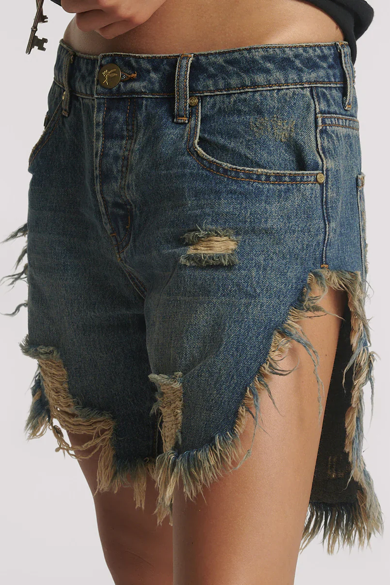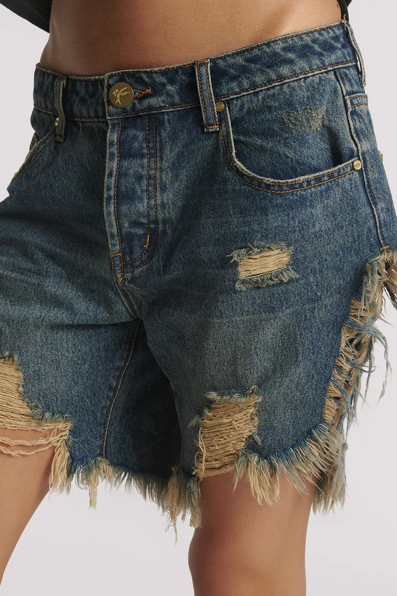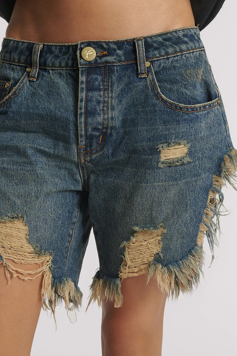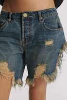 Frankies Low Waist Long Length Denim Shorts | Dirty Blue Love
