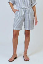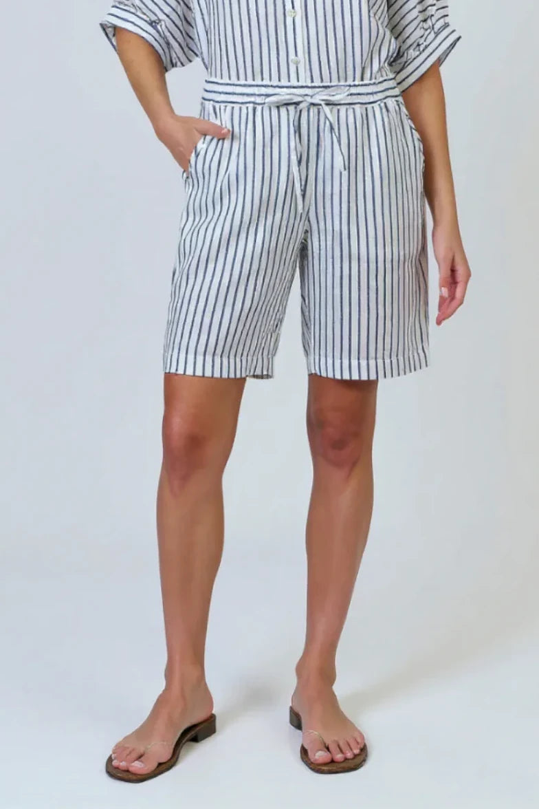 Elevate your casual style with GA241, a chic linen short with a relaxed fit. This short is crafted with deep pockets, a drawstring waist for a comfortable fit, and designed to sit nicely at the waist, ending just above the knee. The loose and flattering silhouette makes it a perfect choice for a laid-back weekend look. Constructed from 100% linen, this short offers both style and comfort.