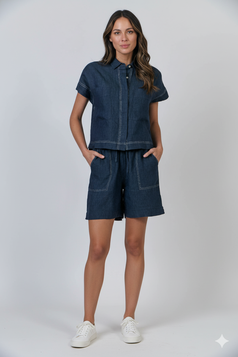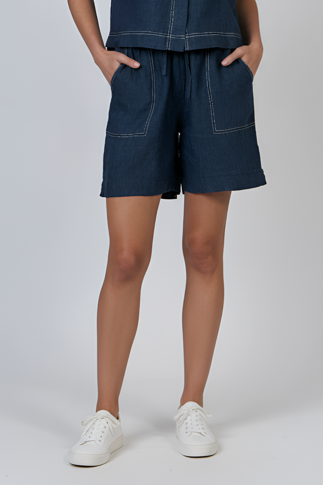 Get ready for summer with our GA477 Linen Shorts! These playful shorts feature a chambray color with contrasting white stitching, adding a touch of quirkiness to any outfit. The pull on design and convenient side pockets make these shorts both stylish and functional. Perfect for any adventure!