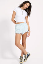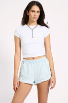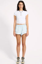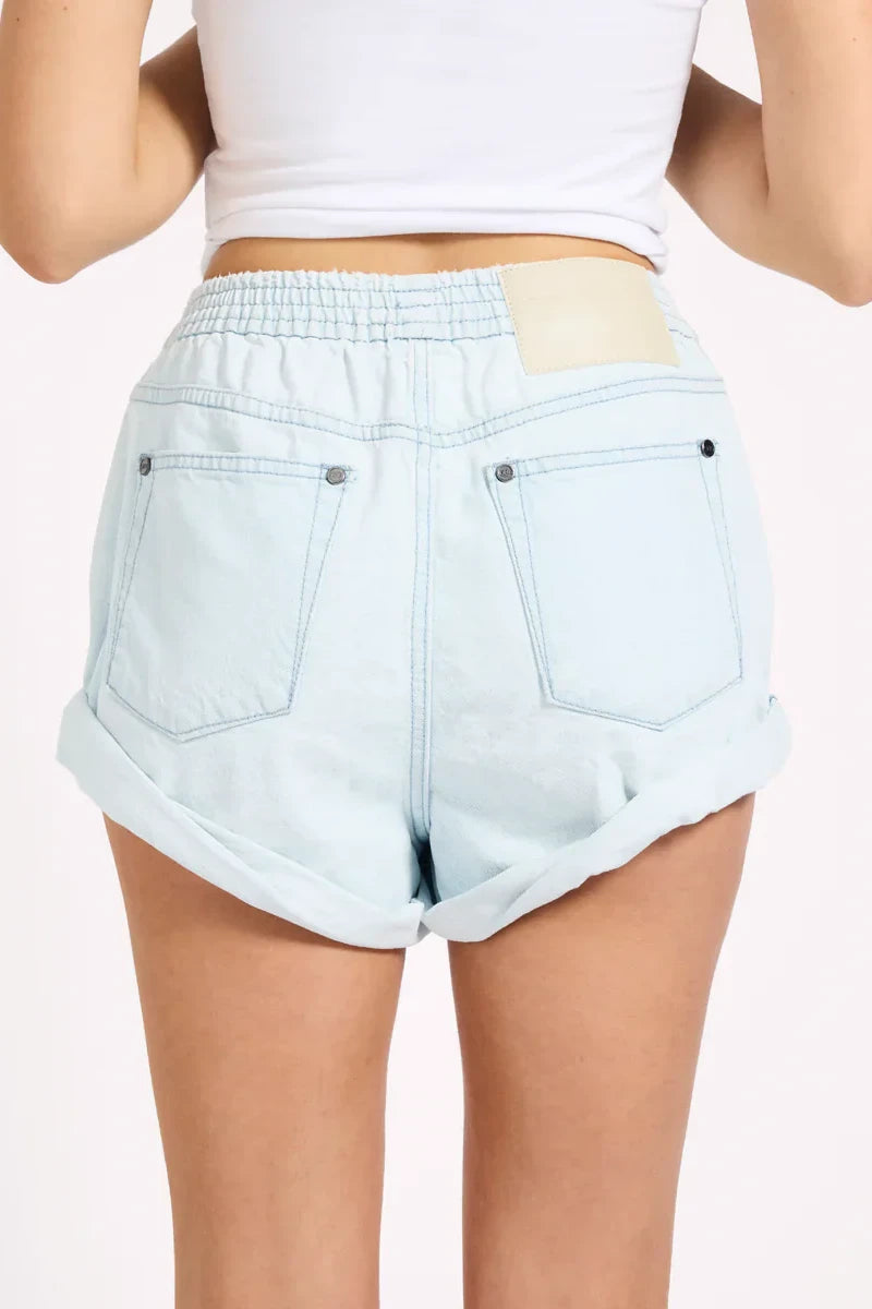 Style with an oversized tee, a loose-fit tank, or a cropped denim jacket. These are the effortless staple you’ll reach for all season long. XANTHE is a heritage electric pearl light blue denim wash — soft, bright, and full of nostalgic summer energy.
