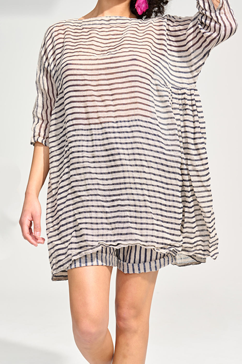 Complete the Look with the Babydoll Top in Flax with Navy Mini Stripe.