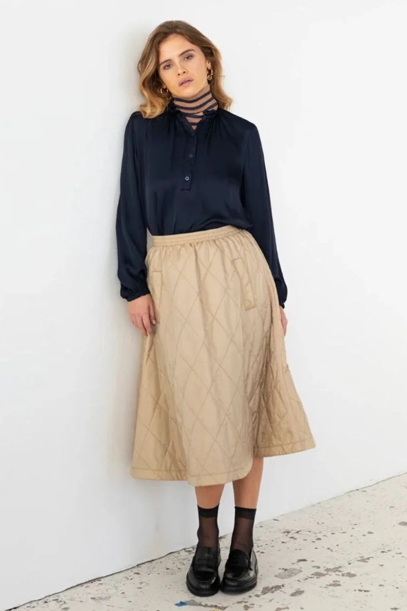 Crafted from a lightweight quilted fabric, the Nicoline Skirt by Project AJ117 is perfect for the cooler months. This stylish midi-length skirt features an elasticated waistband and pockets, wear with T-shirts or blouses for an easy every-day look.