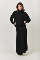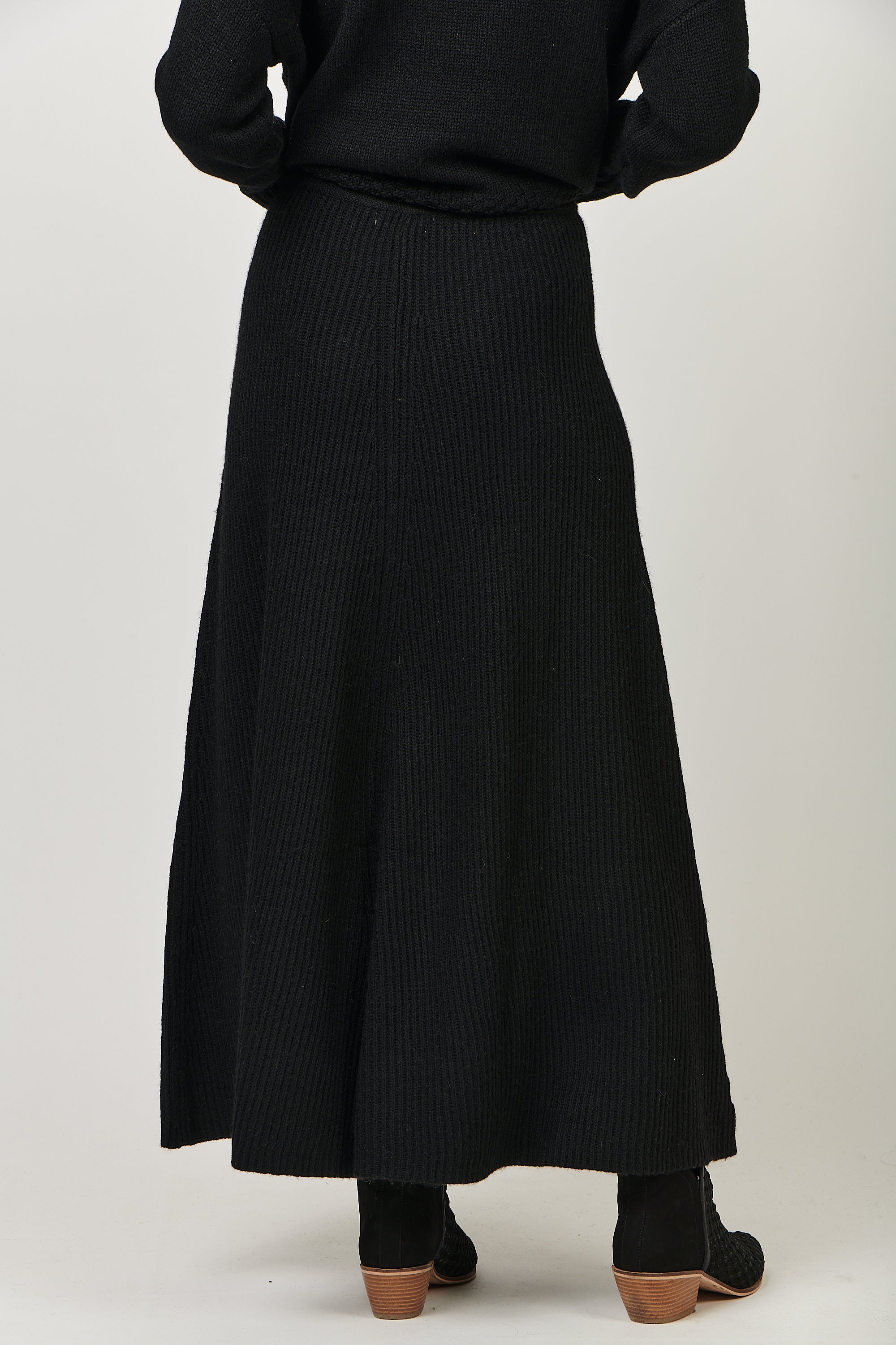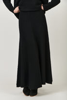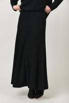 Swap your winter pants for this ultra-elegant cashmere/blend skirt. Featuring an elastic waist band, RE-48 is a full skirt that is fitted at the hips and bottom, with folds of deliciously soft fabric that flows out and falls at the ankles. Perfect paired with boots.