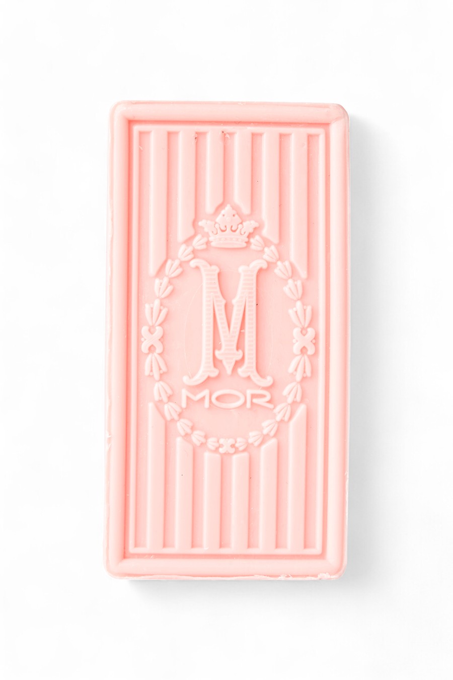 The MOR Marshmallow Triple-Milled Soap bar has been intricately designed with its signature emblem debossed. It is encased in a stunning keepsake box, embossed with gold foil and decorated with its signature floral pattern, inspired by a classical beautiful English Rose Garden with a touch of Victoriana. The box is then finished with gold foil for a luxurious feel on textured linen paper.