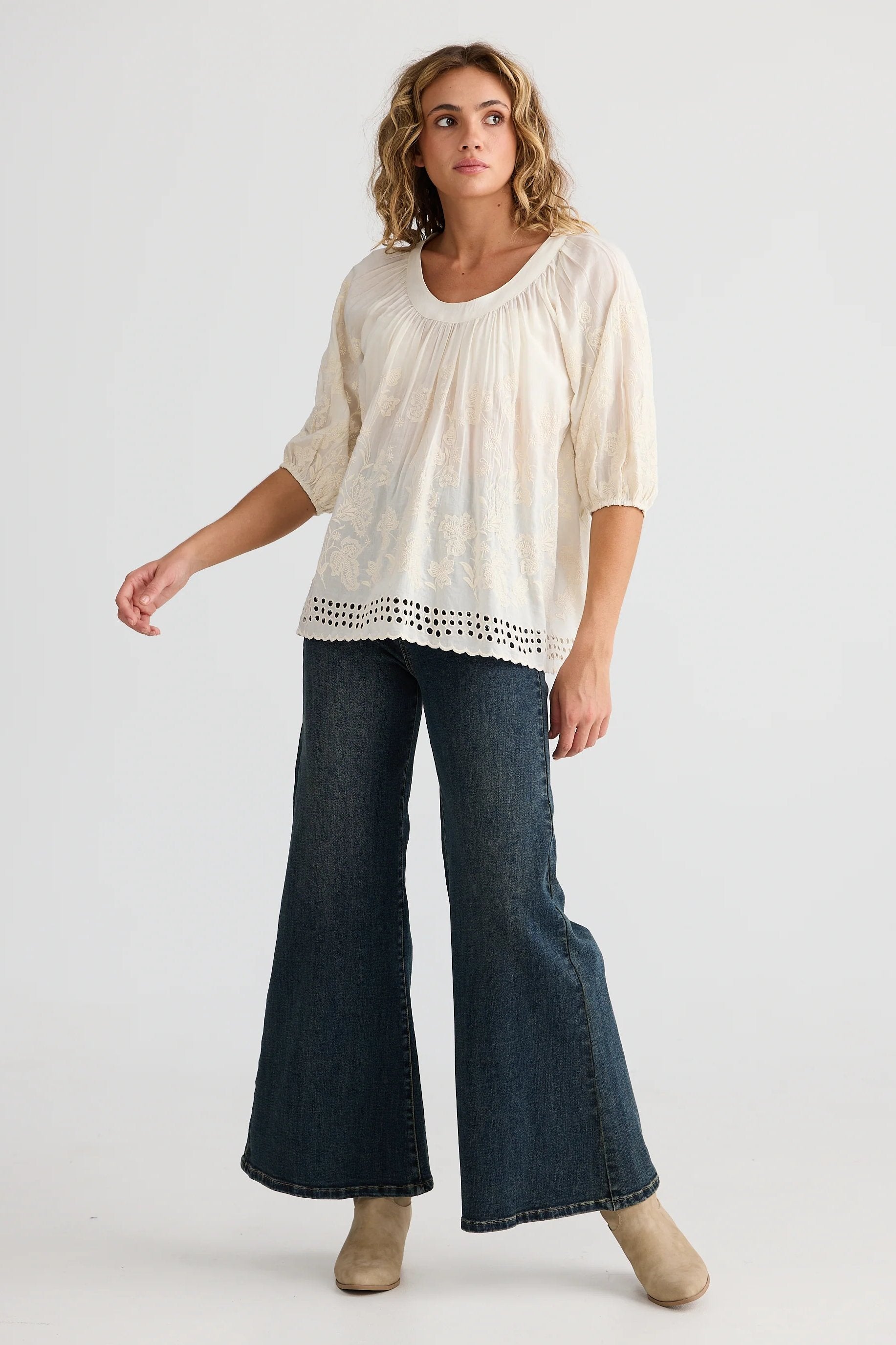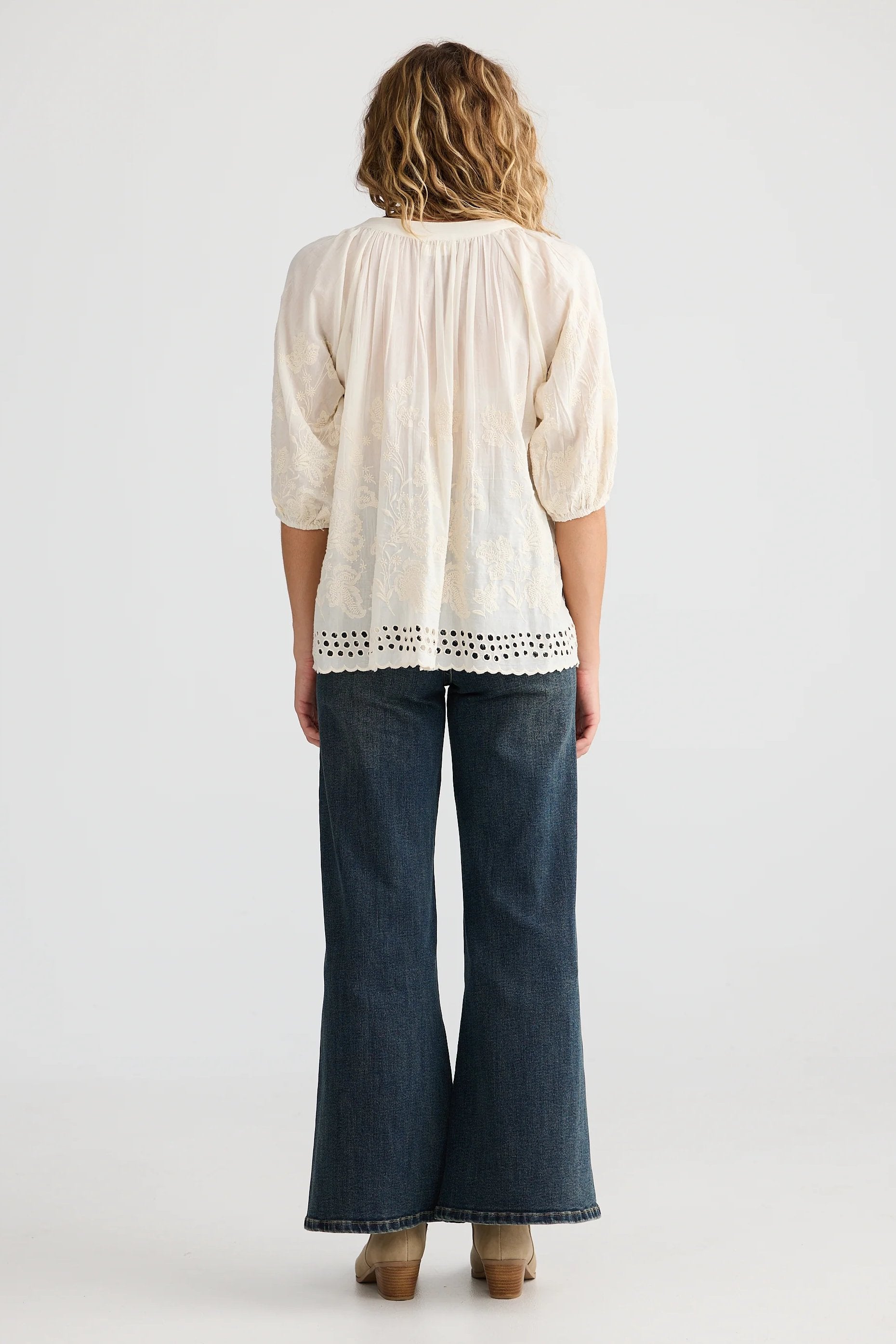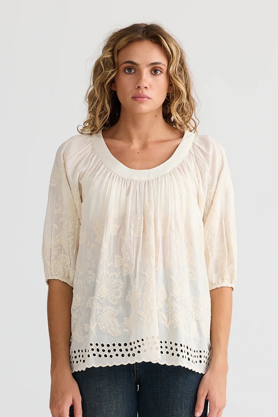 - Embroidered cut our eyelets along hem