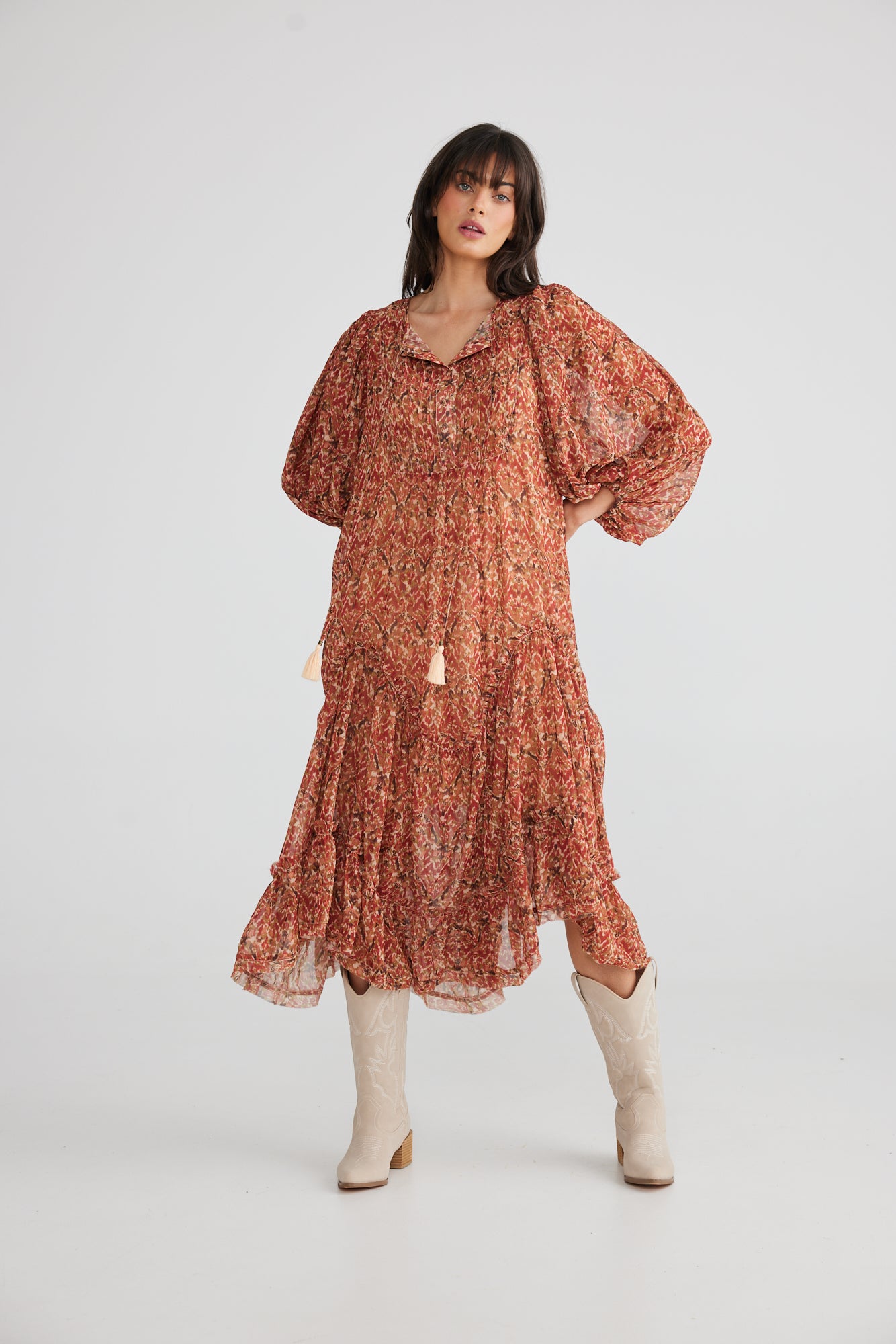 - Bodice pin tucked detailing
