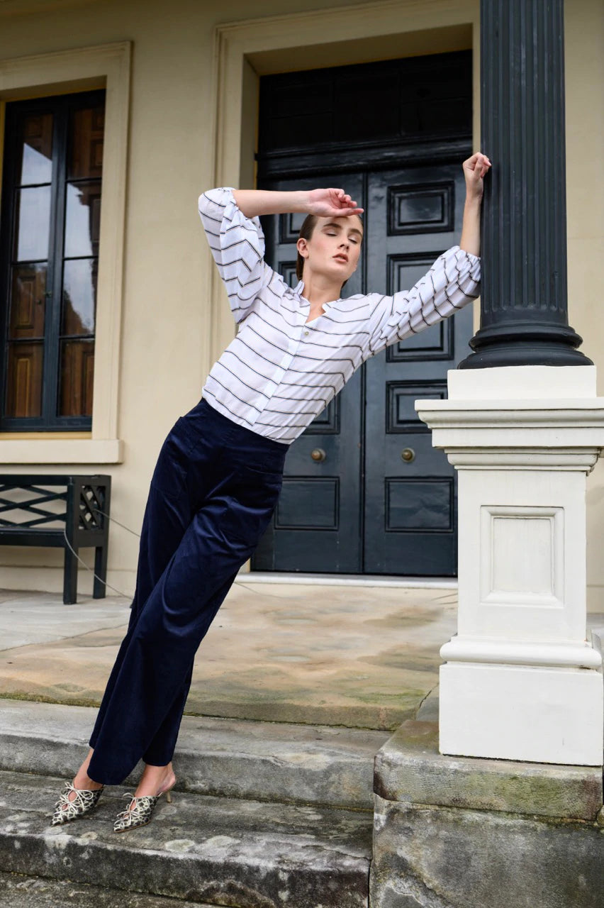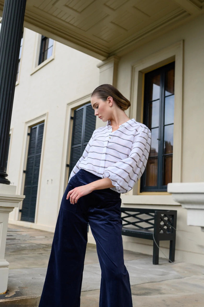 The Ballon Blouse in Ribbon Stripe by Studio Prémia is simple yet stylish. With a wide collar, button down placket and the balloon sleeves from which it takes its name; its fabrication and elevated classic style stand it out from the crowd.