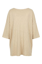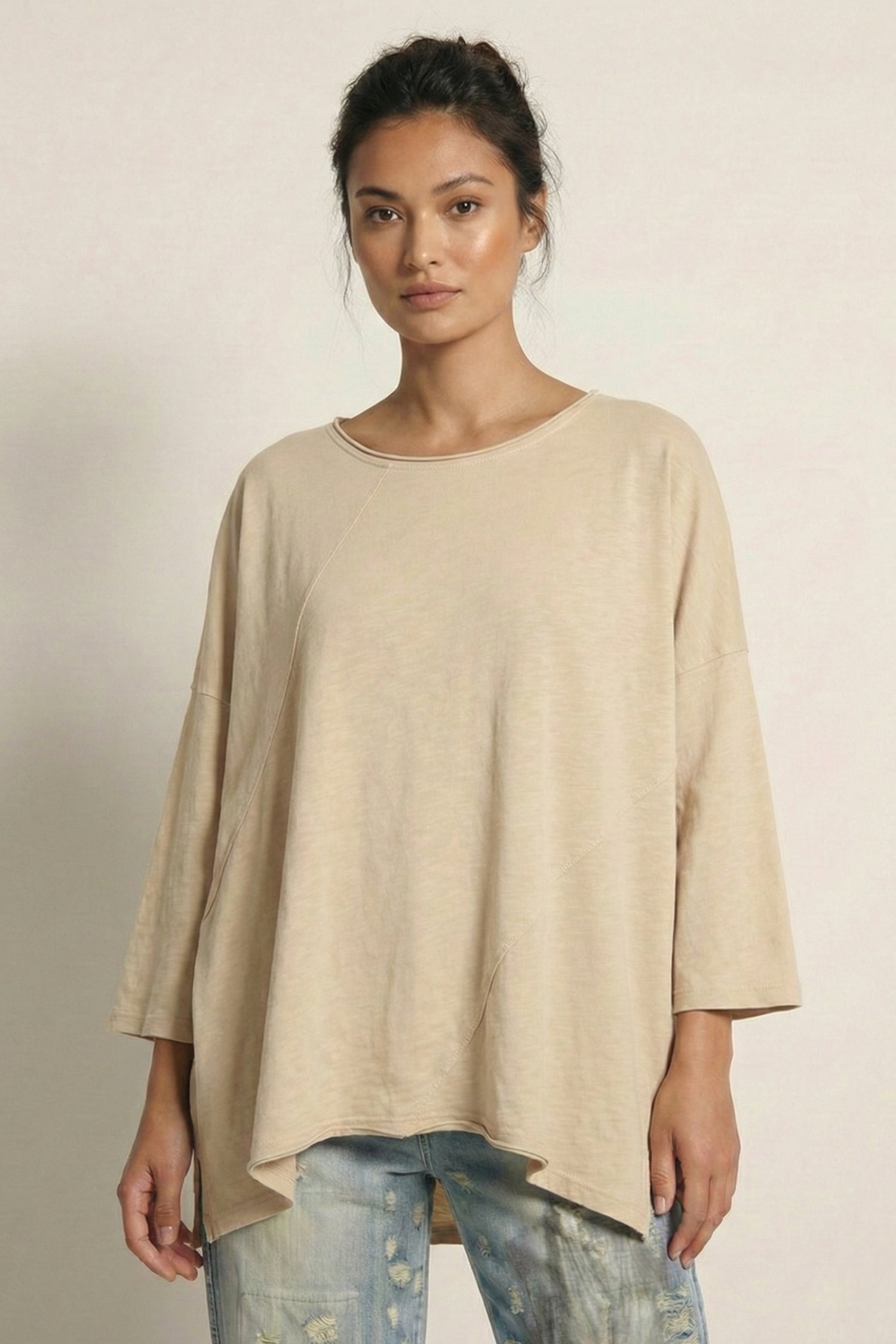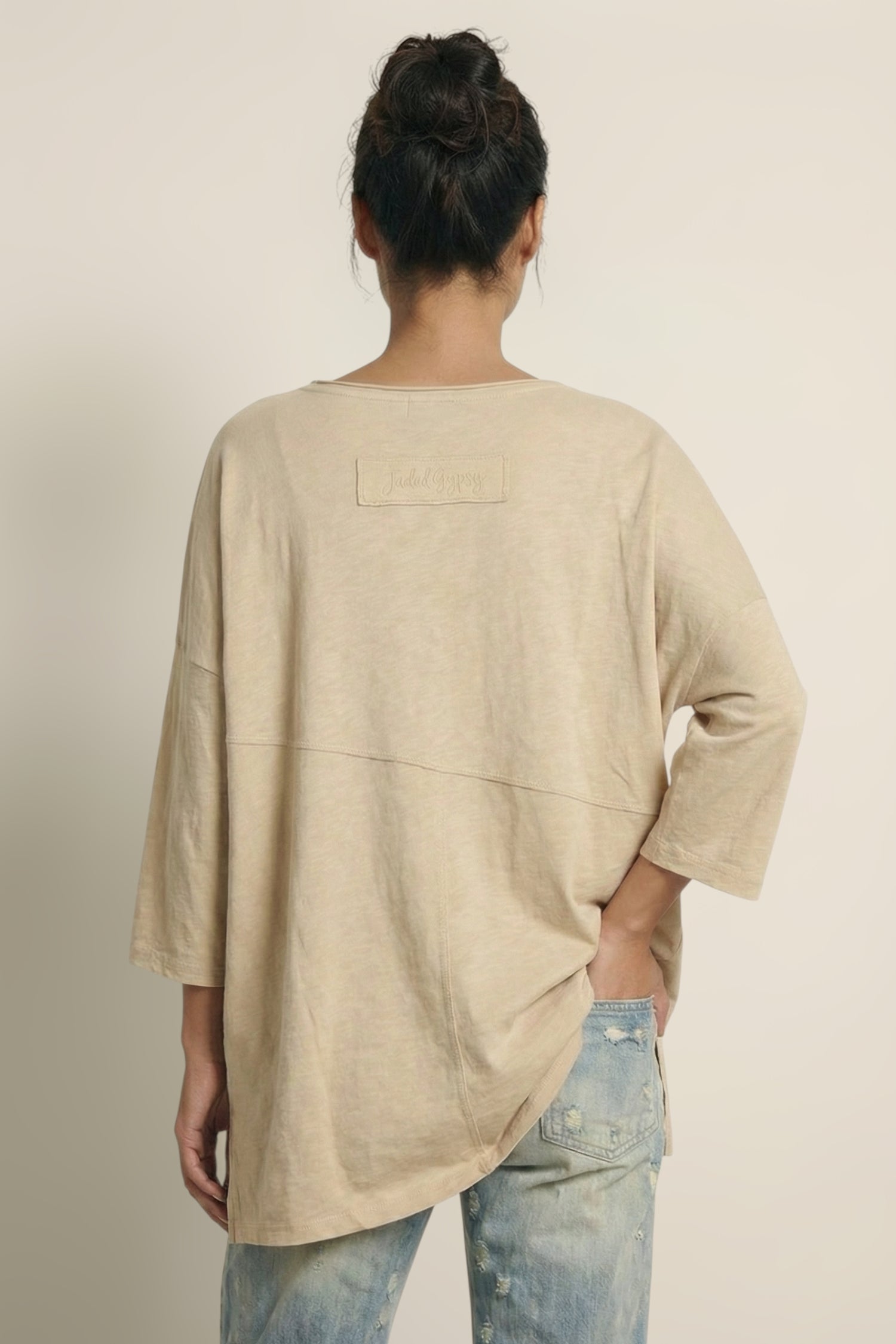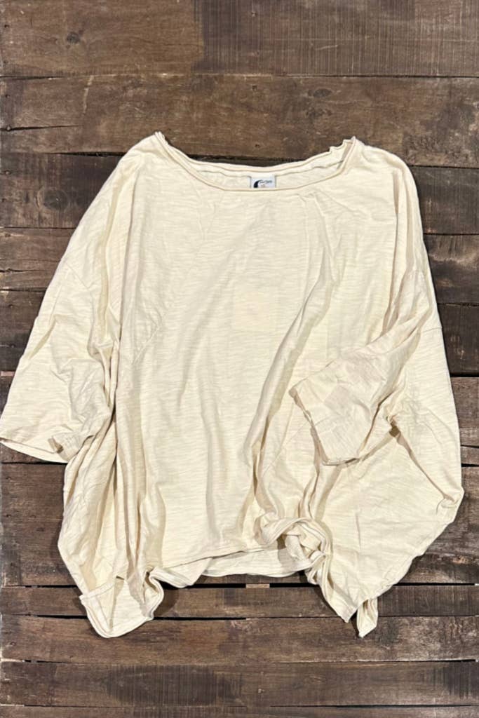 The Be Free Top in Oatmeal combines relaxed elegance with thoughtful design. Featuring a flowing silhouette and artful texture, this piece moves with you while maintaining refined style. The worn-in finish and generous drape create an effortlessly sophisticated look, whether paired with denim, layered over a slip dress, or styled with wide-leg trousers. Designed for those who value comfort without compromise.