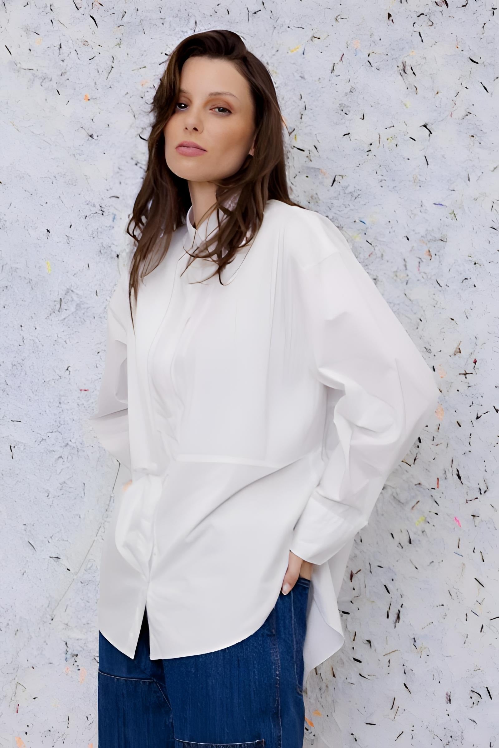 The popular M.A.Dainty Bobby Pin Shirt is back for another season. This versatile crisp white shirt is a firm favourite and works well with any outfit. Do not miss out on this invaluable piece – ideal for a capsule wardrobe. Bobby Pin has the signature M.A. Dainty oversized fit so if you prefer a more true-to-size fit you might like to consider sizing down from your usual size.