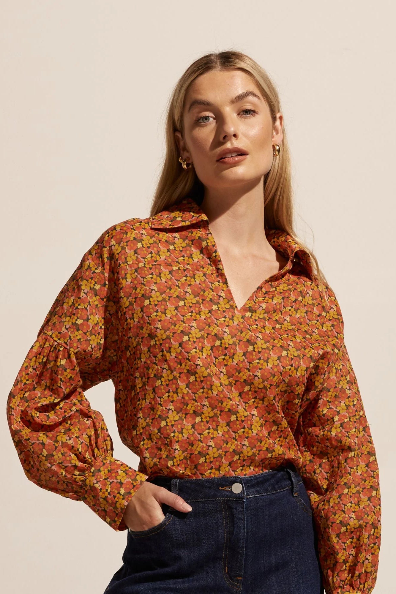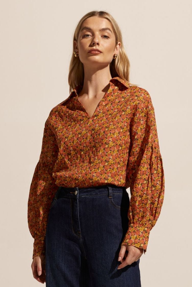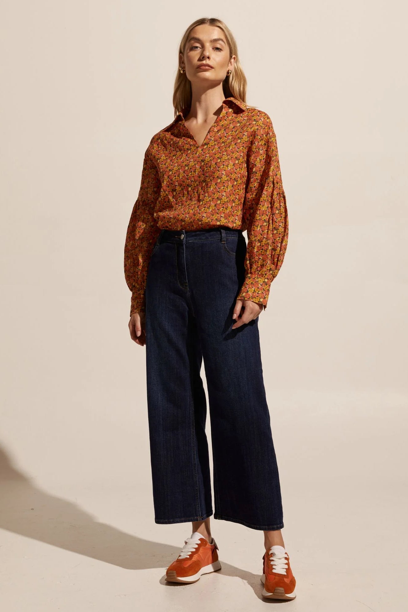 This best-selling piece is a romantic play on both the masculine and the feminine. A flattering slightly oversized fit is feminised with a drop lantern sleeve, a v neckline and slightly splayed collar. The Bounty Top by Zoe Kratzmann is your everyday go-to for the modern romantic. Also Available in Juniper.