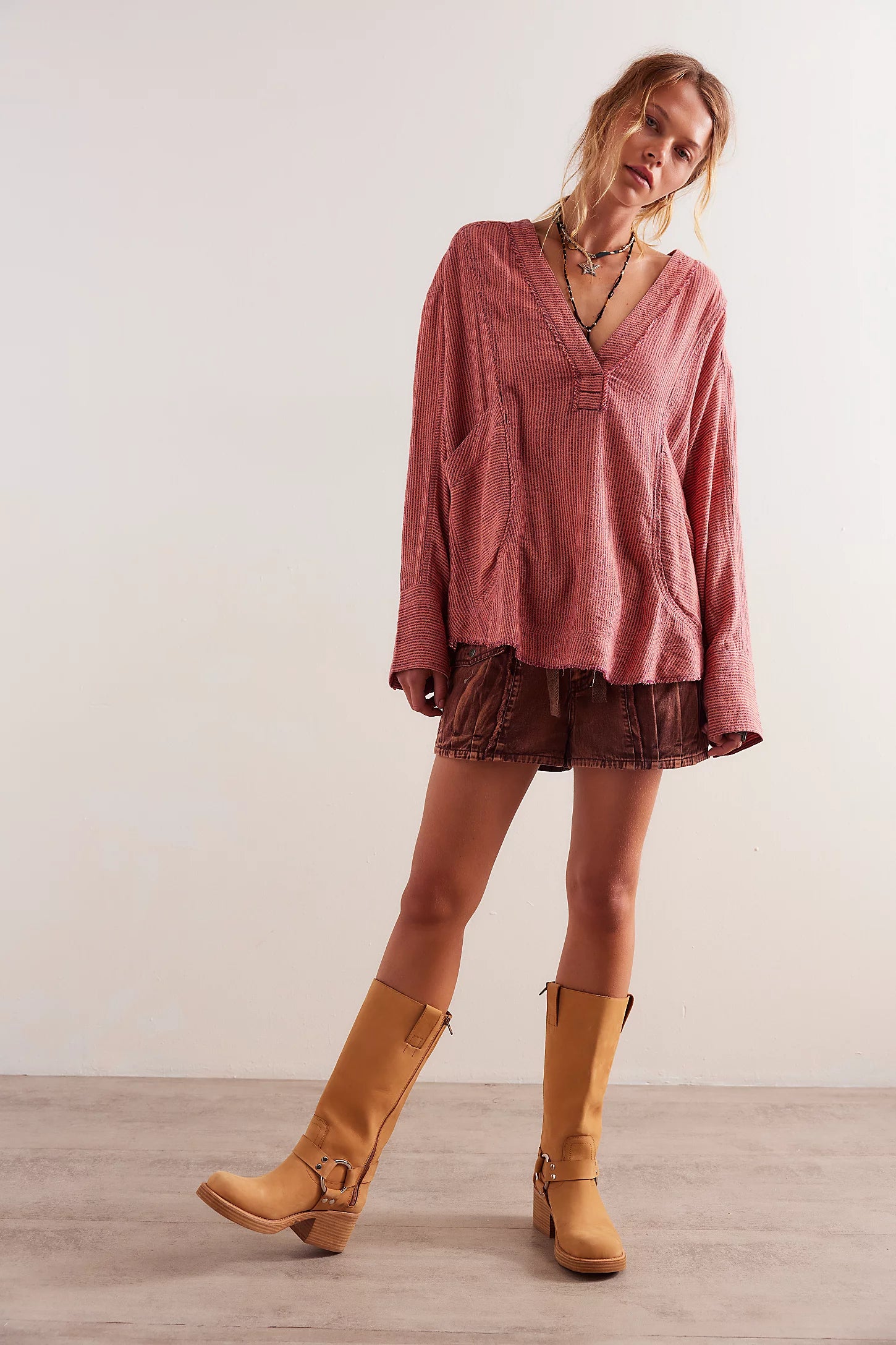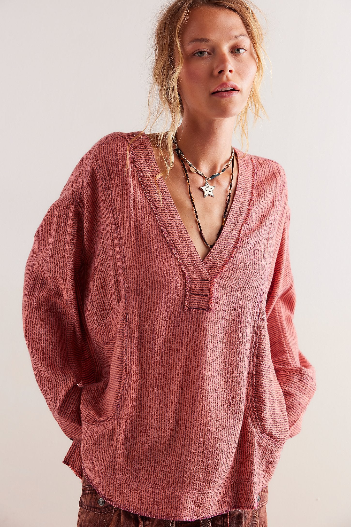 Your new favorite slouchy shirt from our We The Free collection, featured in an oversized fit and long-sleeve silhouette with a deep V-neckline and raw trim. The perfect wear-everywhere layer, this shirt is forever-timeless.