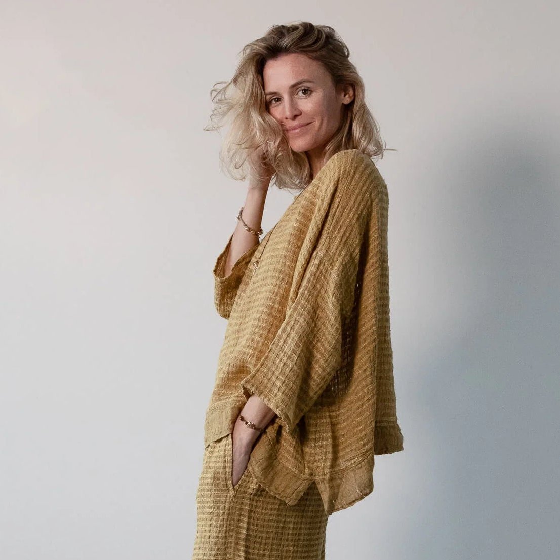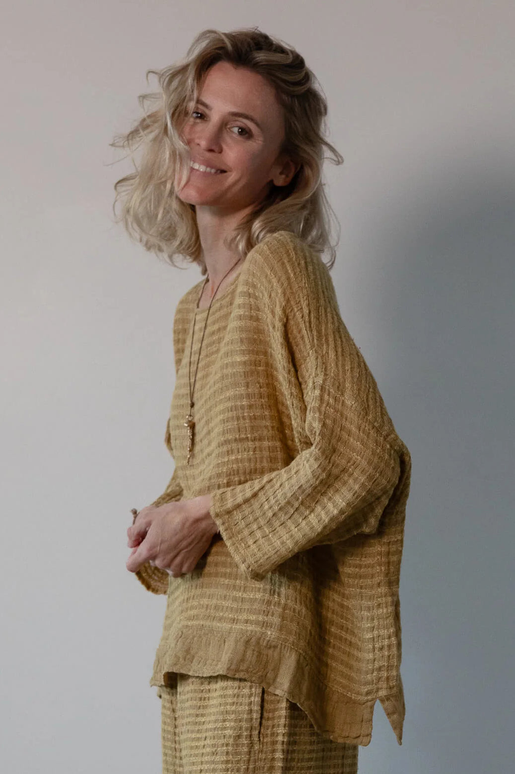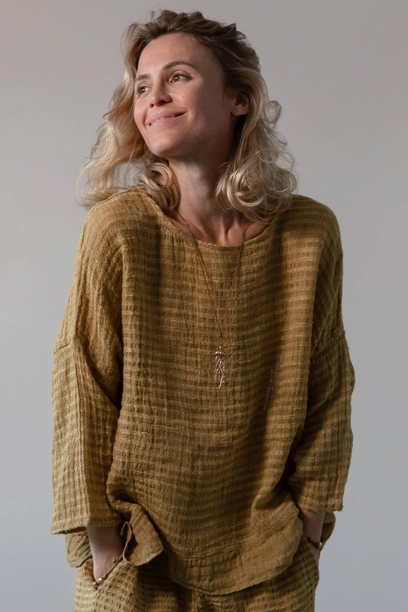 - Lightweight Gauze Fabric in Uffizi Deserto: Breathable and airy, ideal for effortless, year-round wear.