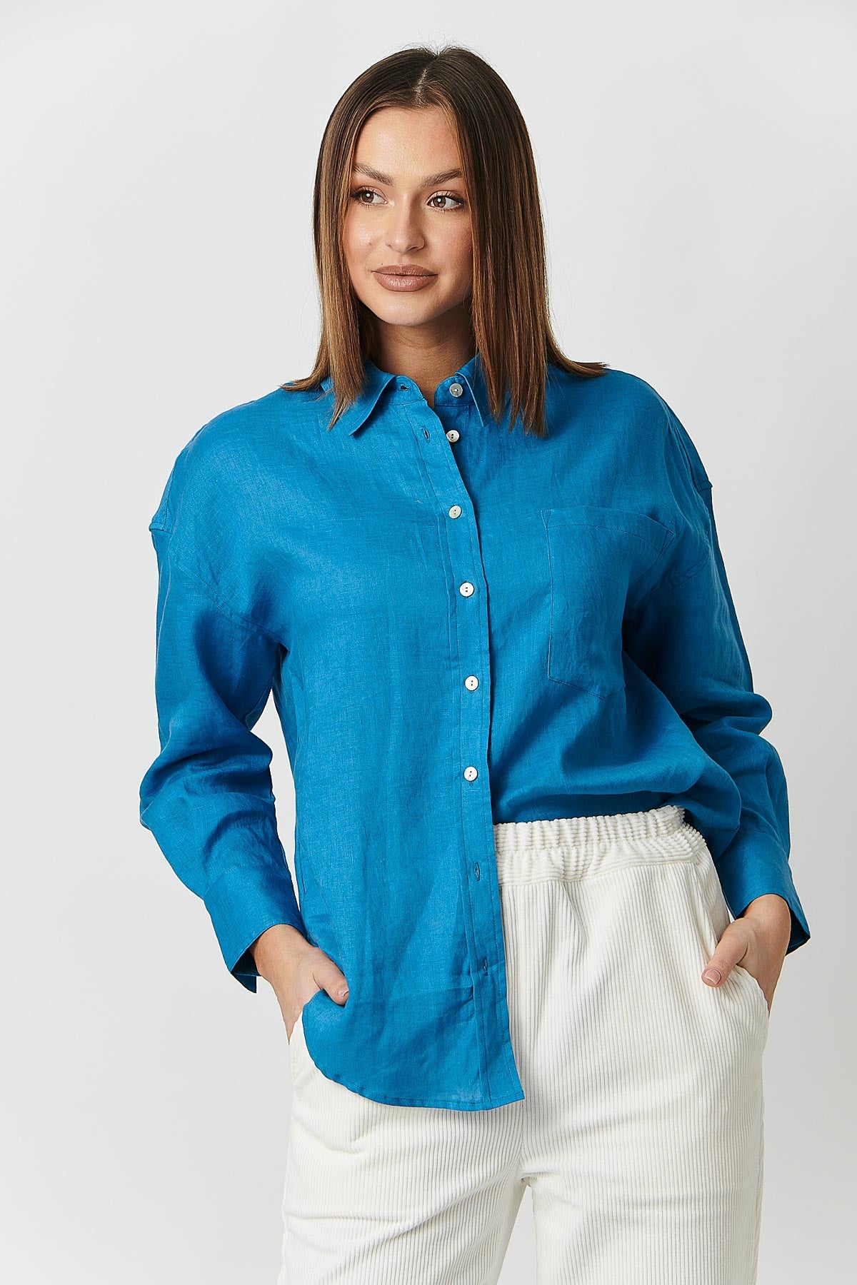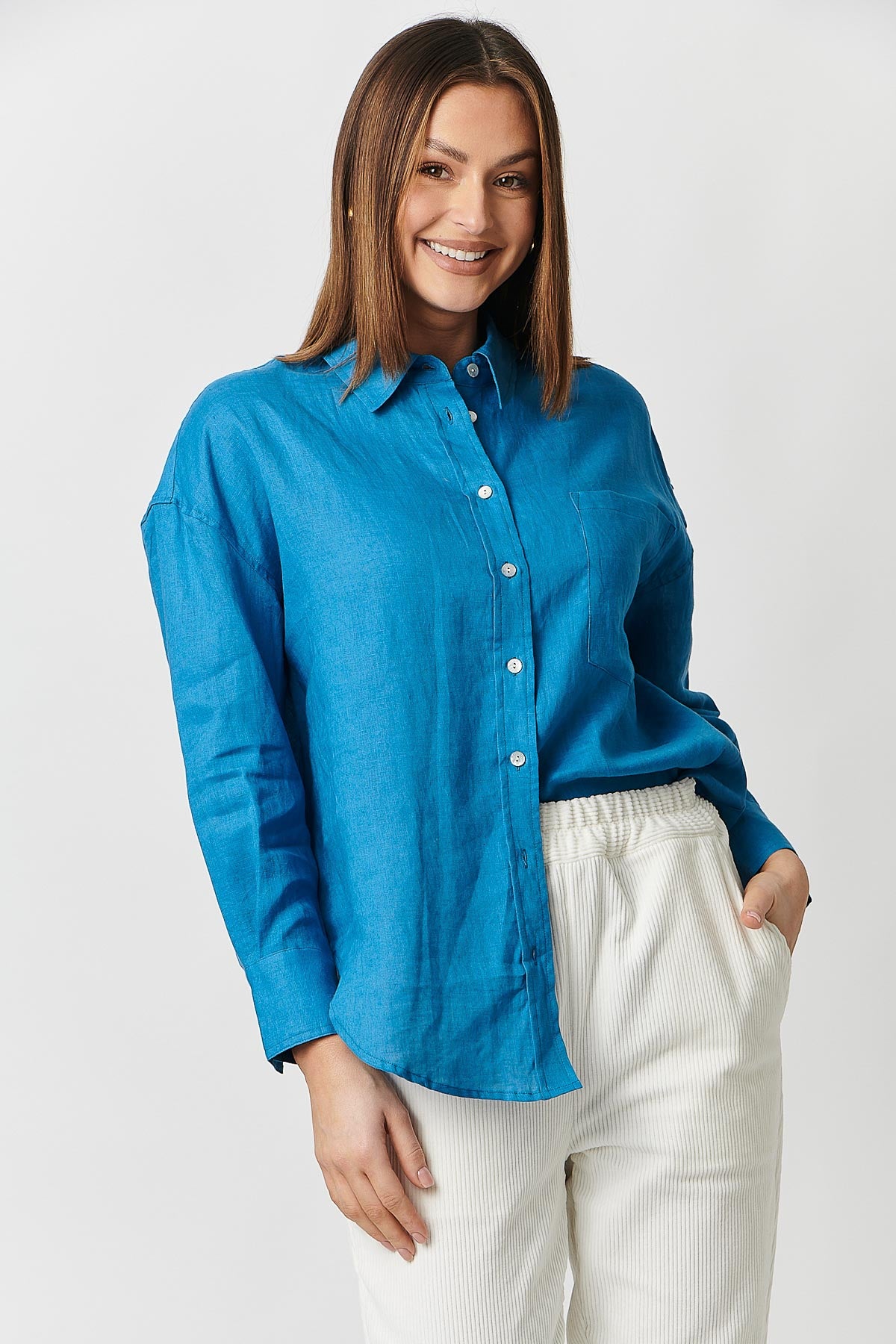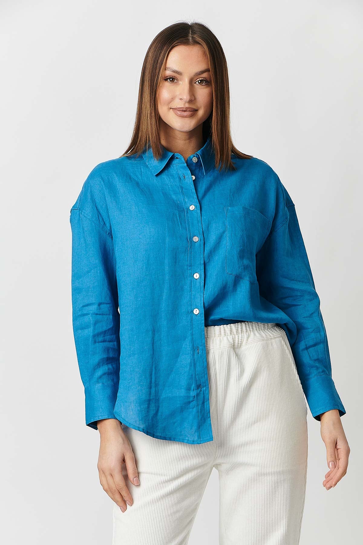 The Classic Button Up Shirt by Naturals by O&J is a staple style in anyone's trans-seasonal wardrobe. Featuring the timeless button down with collar design in a light weight linen. Pair back with your favourite Bianco Jeans or linen pants for an effortless outfit. Also Available in Shamrock, Azalea and White.