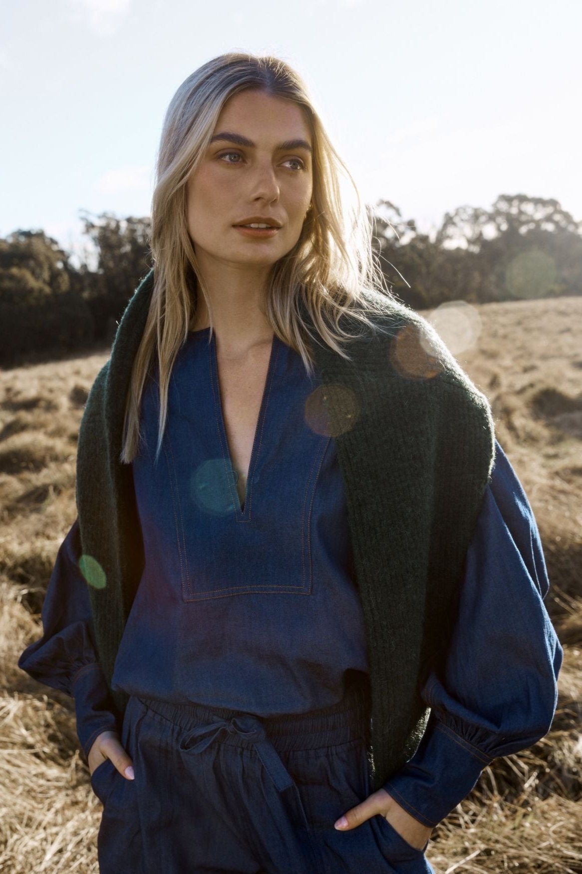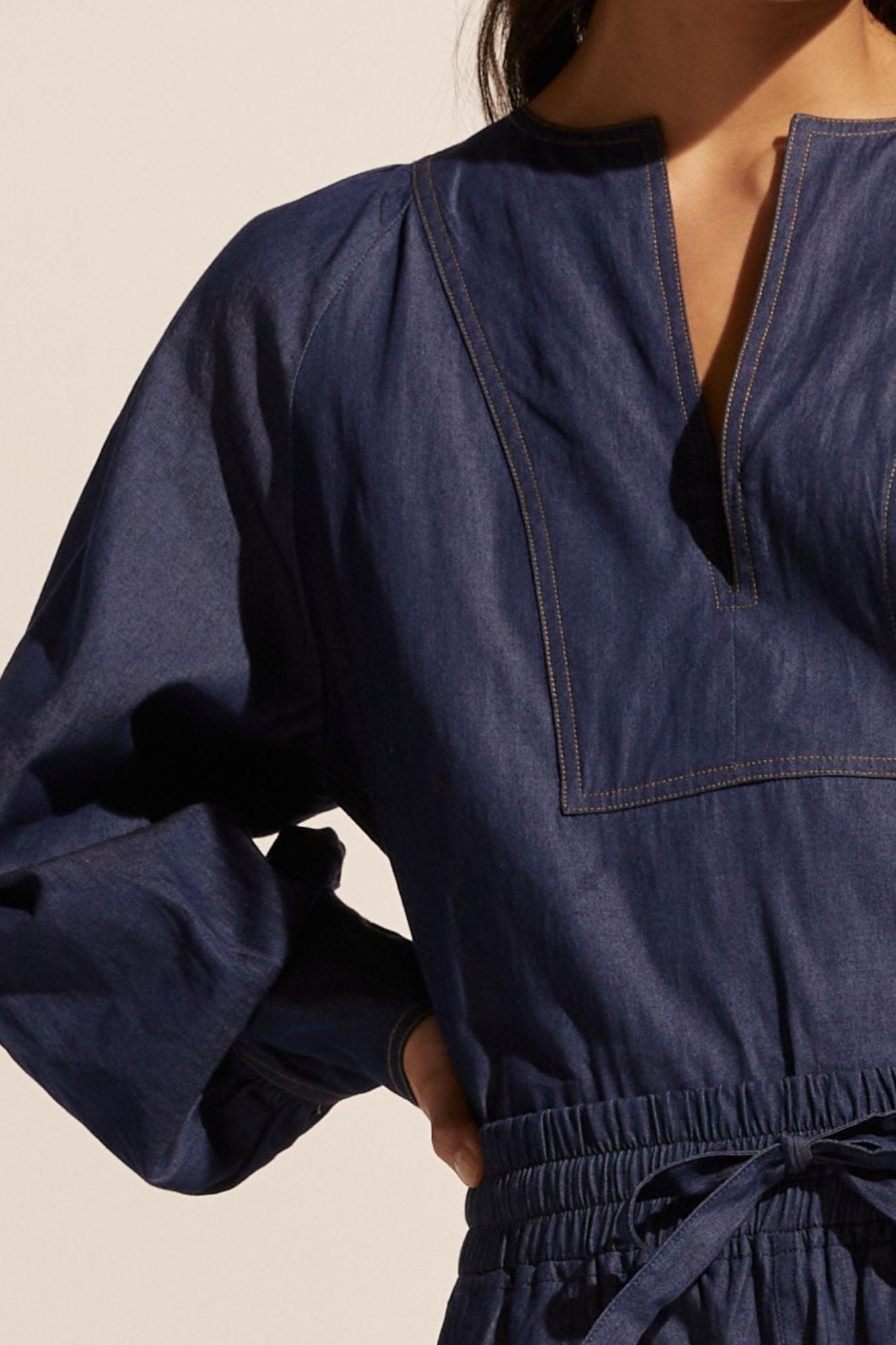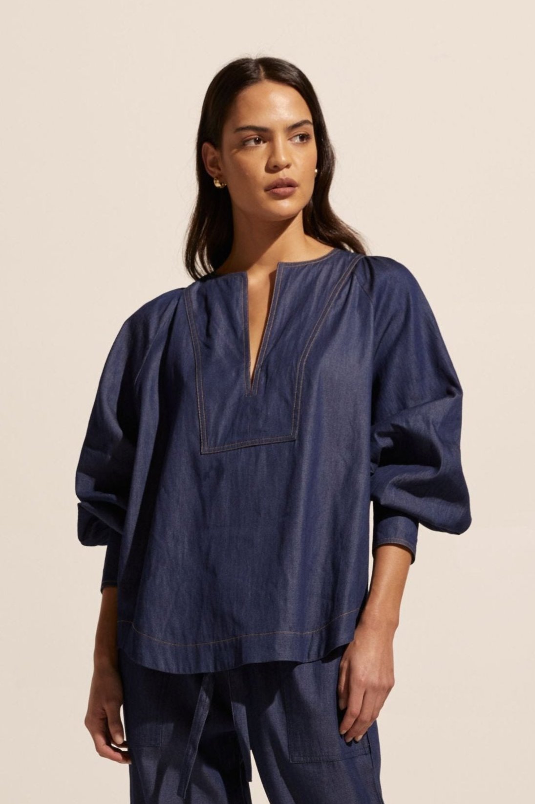 Collude Top in Dark Chambray