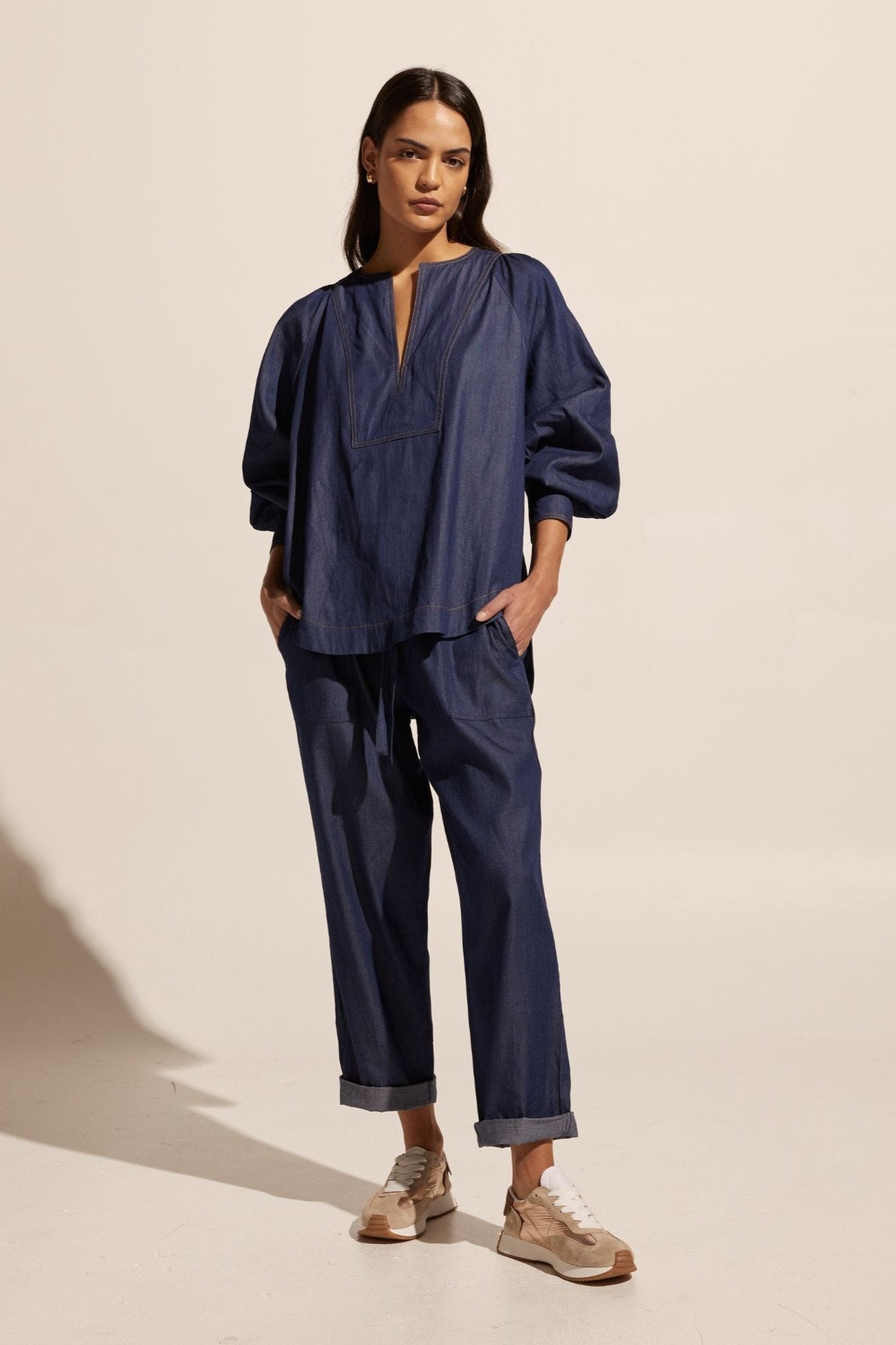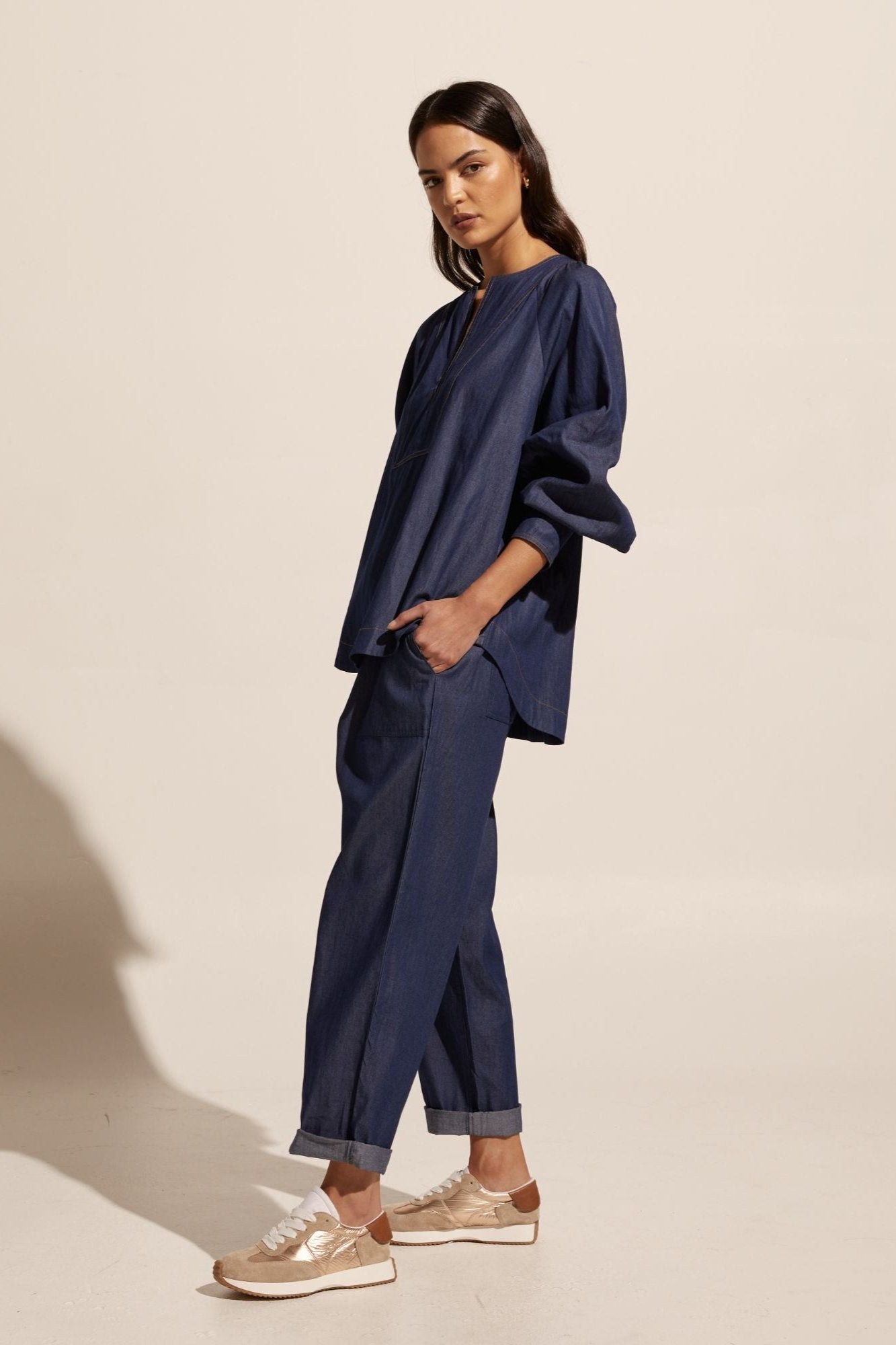 - Featured with the Bolster Pant in Dark Chambray and the Tang Sneaker in Beige.