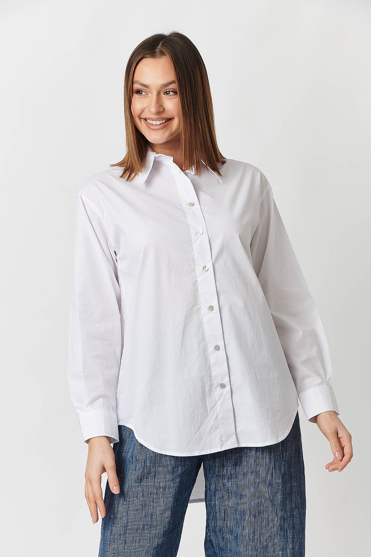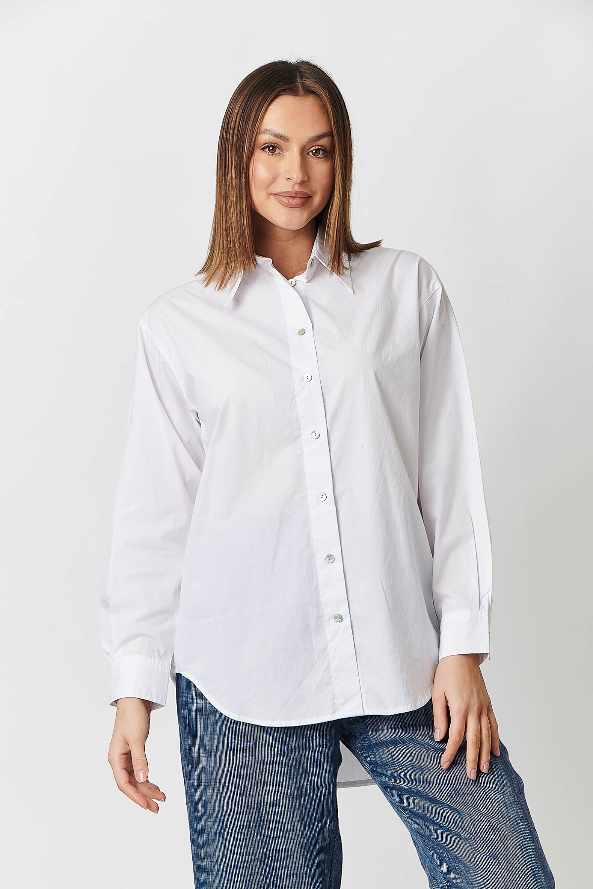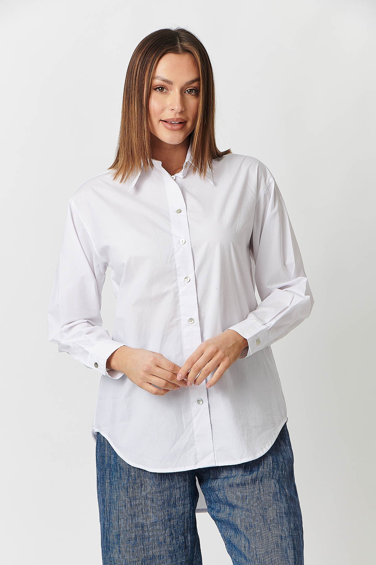 The Cotton Boyfriend Shirt in White by Naturals by O&J is.