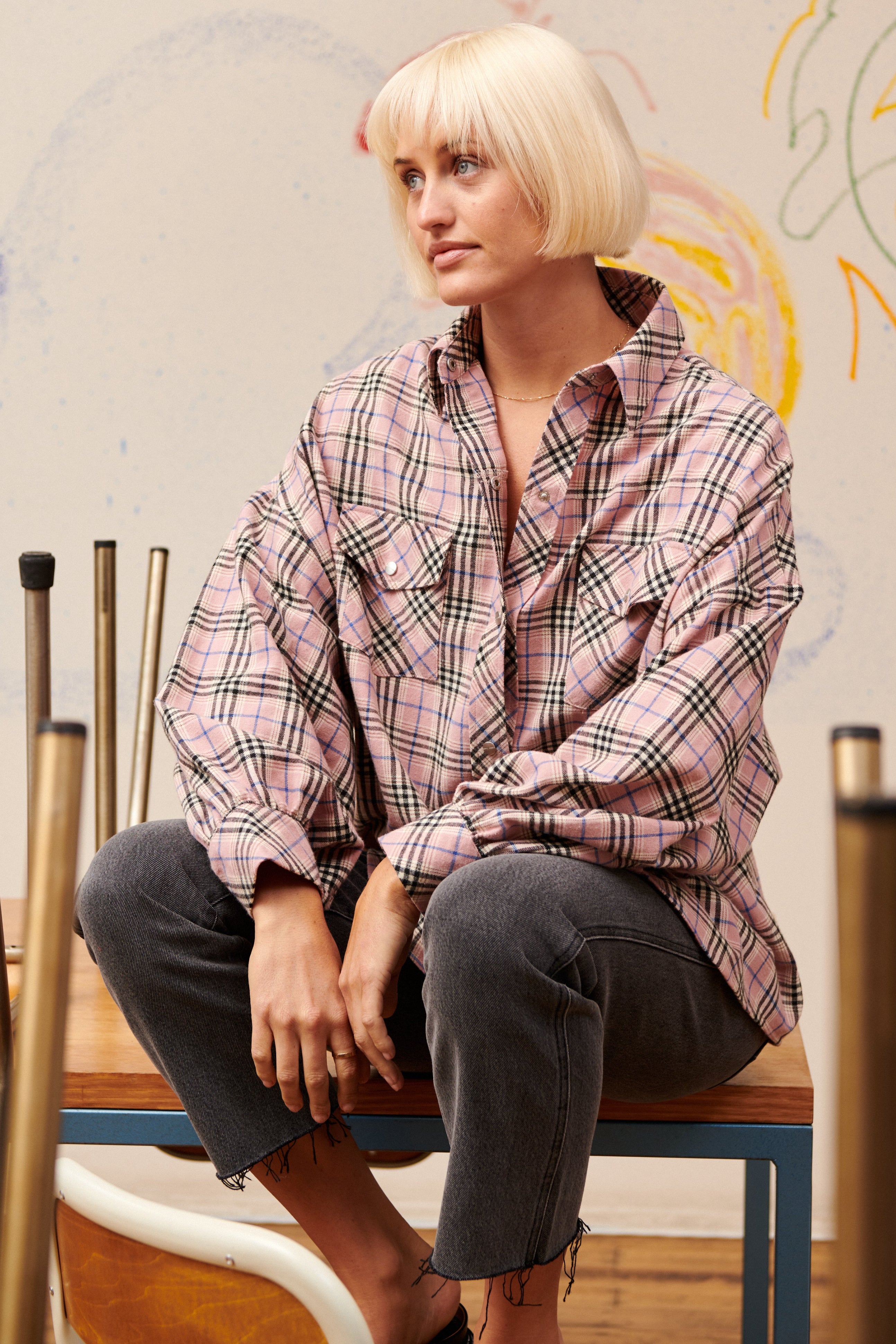 Dickens is cut from soft cotton flannel, designed to be worn solo as a shirt or layered over a basic tee. Detailed with easy 'bm' embossed studs down the centre front for ease, and cut to an oversized shape for casual weekends in comfort. Wear your shirt with denim for the ultimate cool casual look!