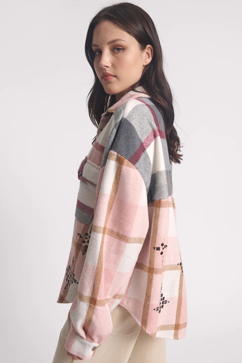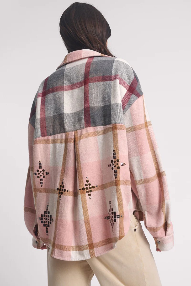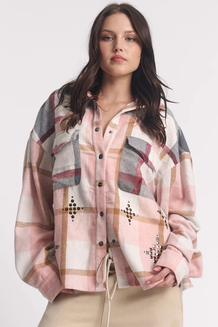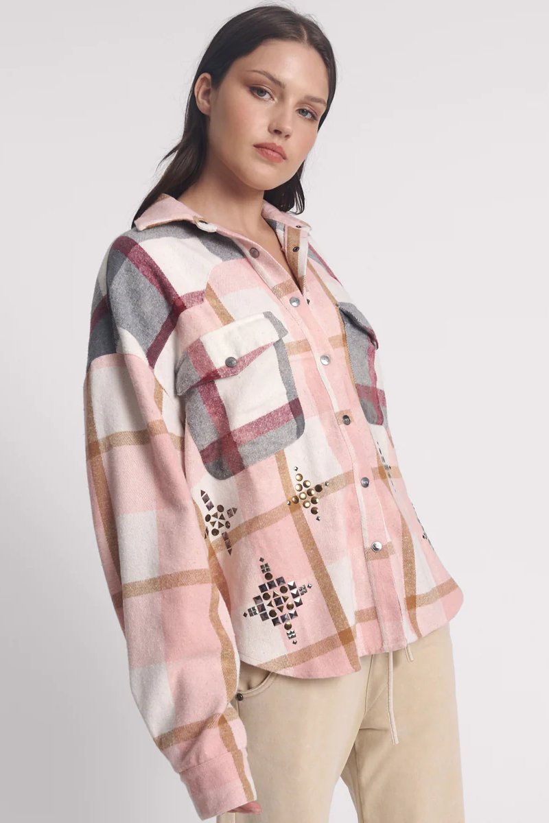 Flannel Studded Daria Shacket | Pink