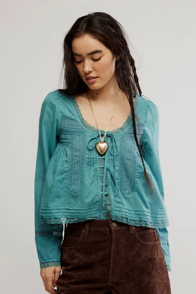 Your favourite femme tank, now featured in a chic long-sleeve silhouette. This lace-adorned top pairs perfectly with your favorite slouchy jeans or a sleek mini skirt. This product was consciously made to reduce our footprint and supports our mission to be a little bit better every day.