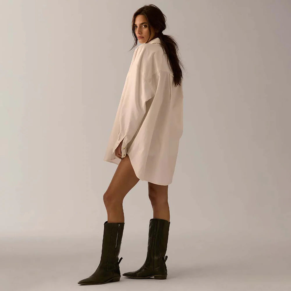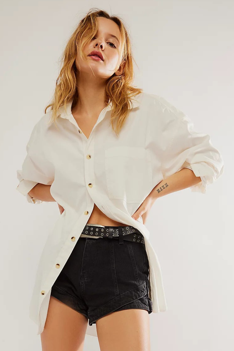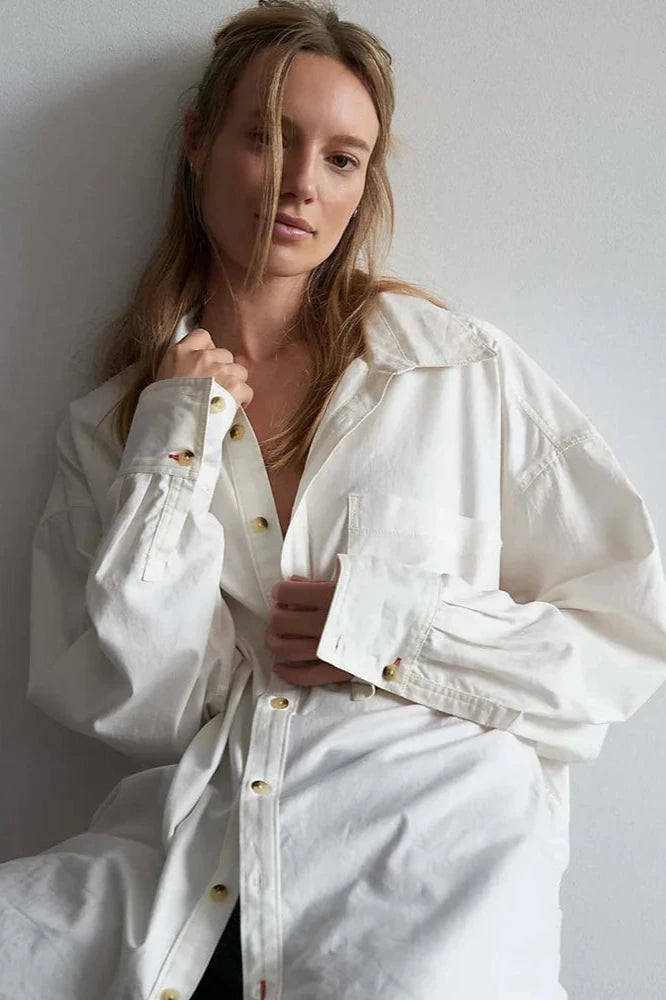 The perfect buttondown, this classic shirt is featured in a cool cotton fabrication and oversized fit with dropped shoulders and a collared neckline. The one that goes with everything, this shirt adds a menswear-inspired touch to any outfit.