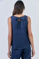 Elevate your casual wardrobe with the GA506 top, crafted from 100% linen for breathable comfort. Its sleeveless design features a distinctive cut with a slightly higher front and an elongated, curved back, creating a modern silhouette. The back is elegantly finished with a ribbon tie, adding a refined touch that enhances its unique style. Perfect for those seeking a sophisticated yet effortless look.